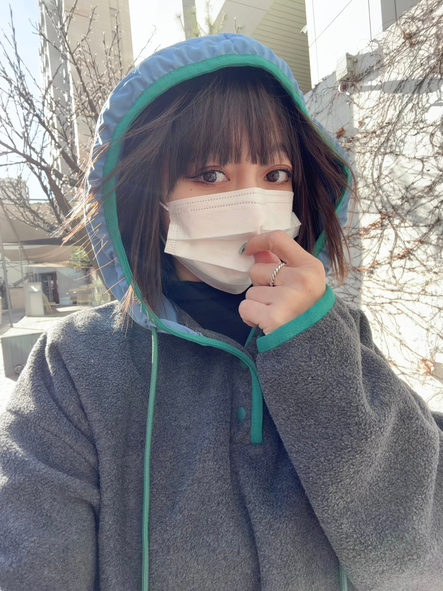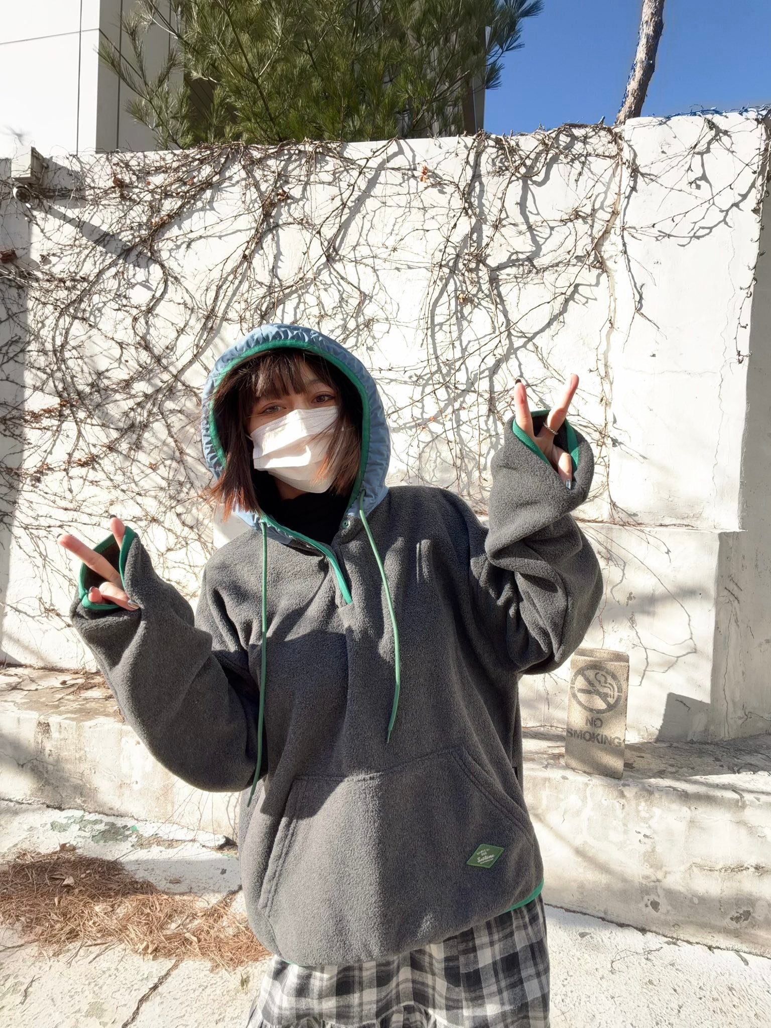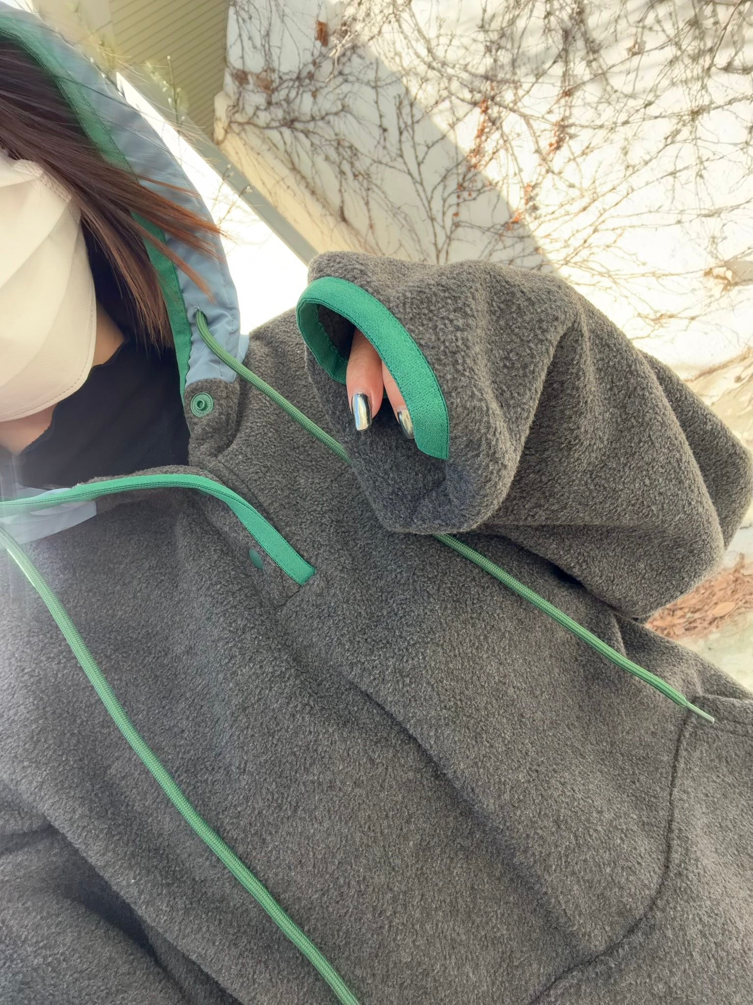半開襟設計加上連帽,