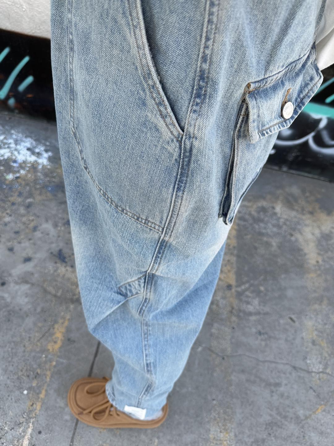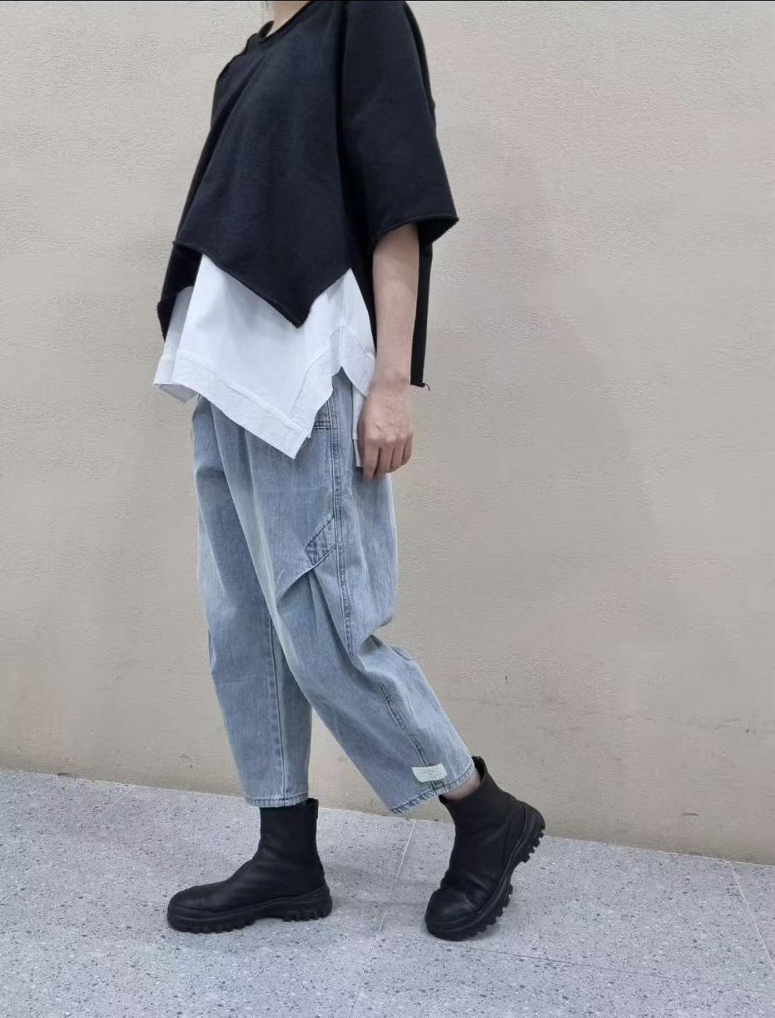 韓國連線 BK78 打褶設計布標貼牛仔褲