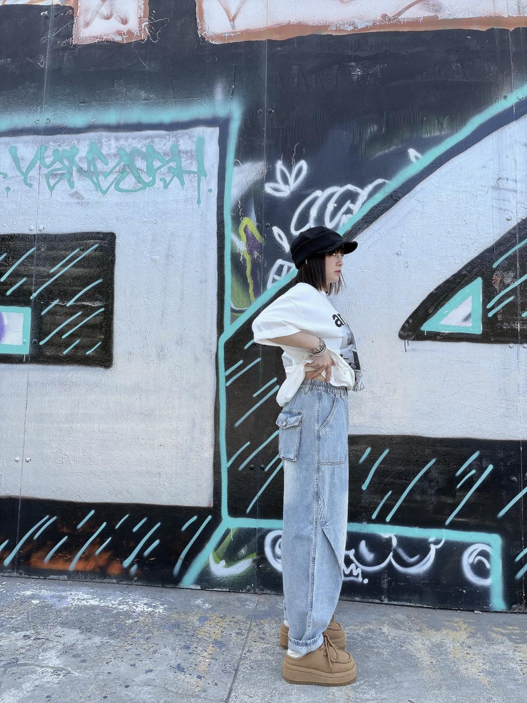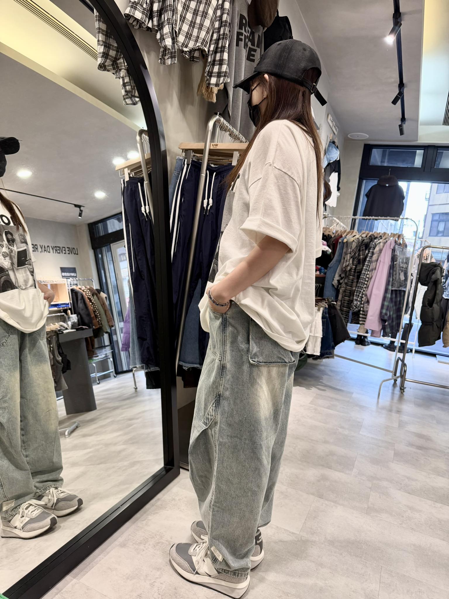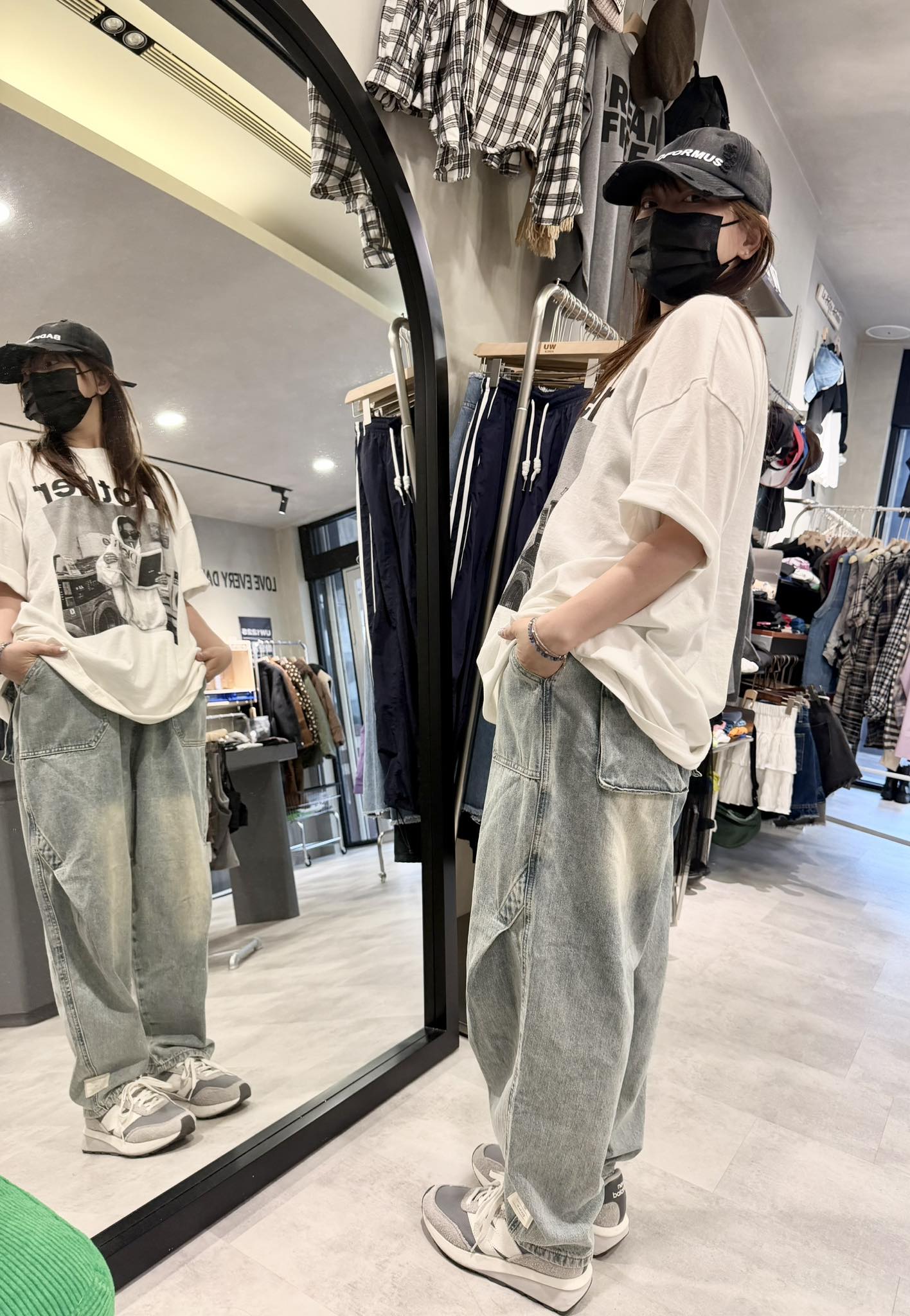 • 韓國連線 BK05 春裝新品高腰刷白寬版牛仔褲 NT.$1078