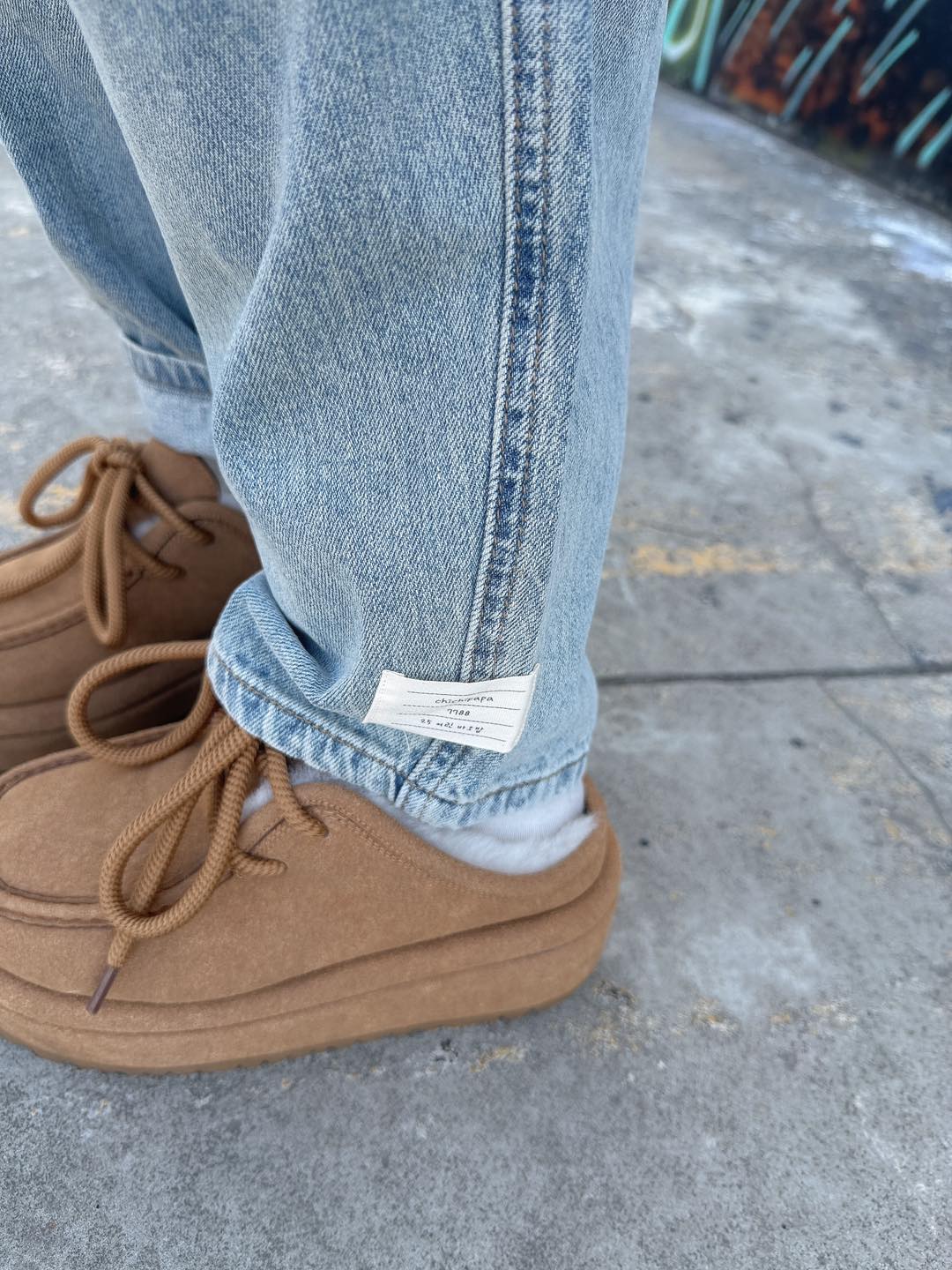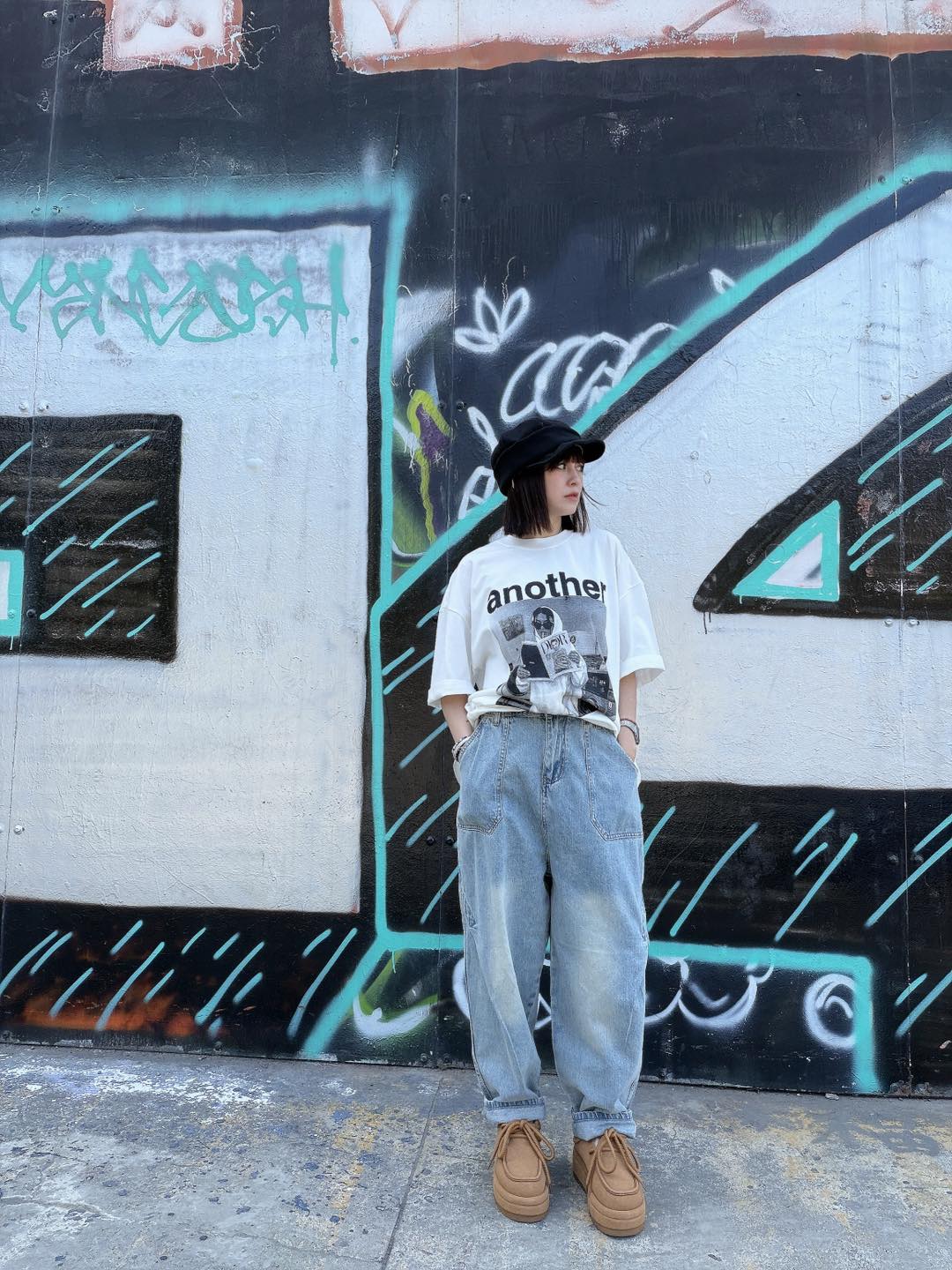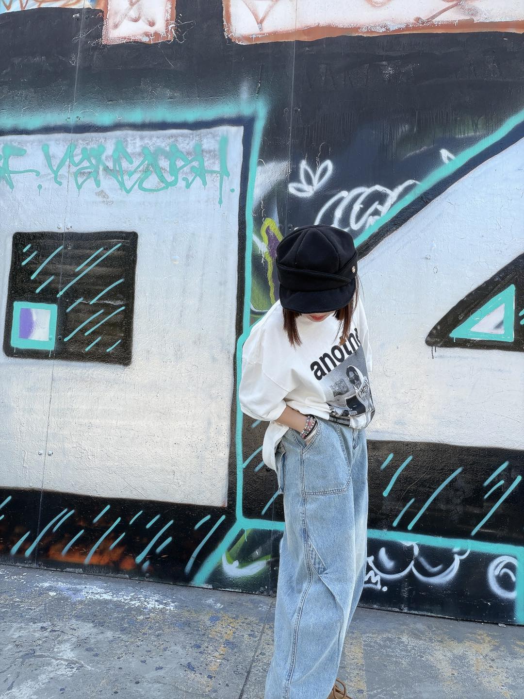 • 韓國連線 BK05 春裝新品高腰刷白寬版牛仔褲 NT.$1078