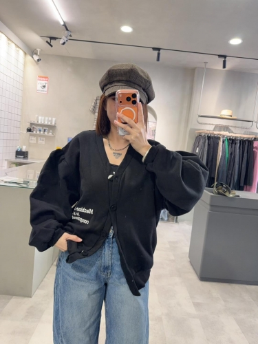• 韓國 隱藏款新品 後拼條紋針織內刷毛排扣外套 NT.$1750