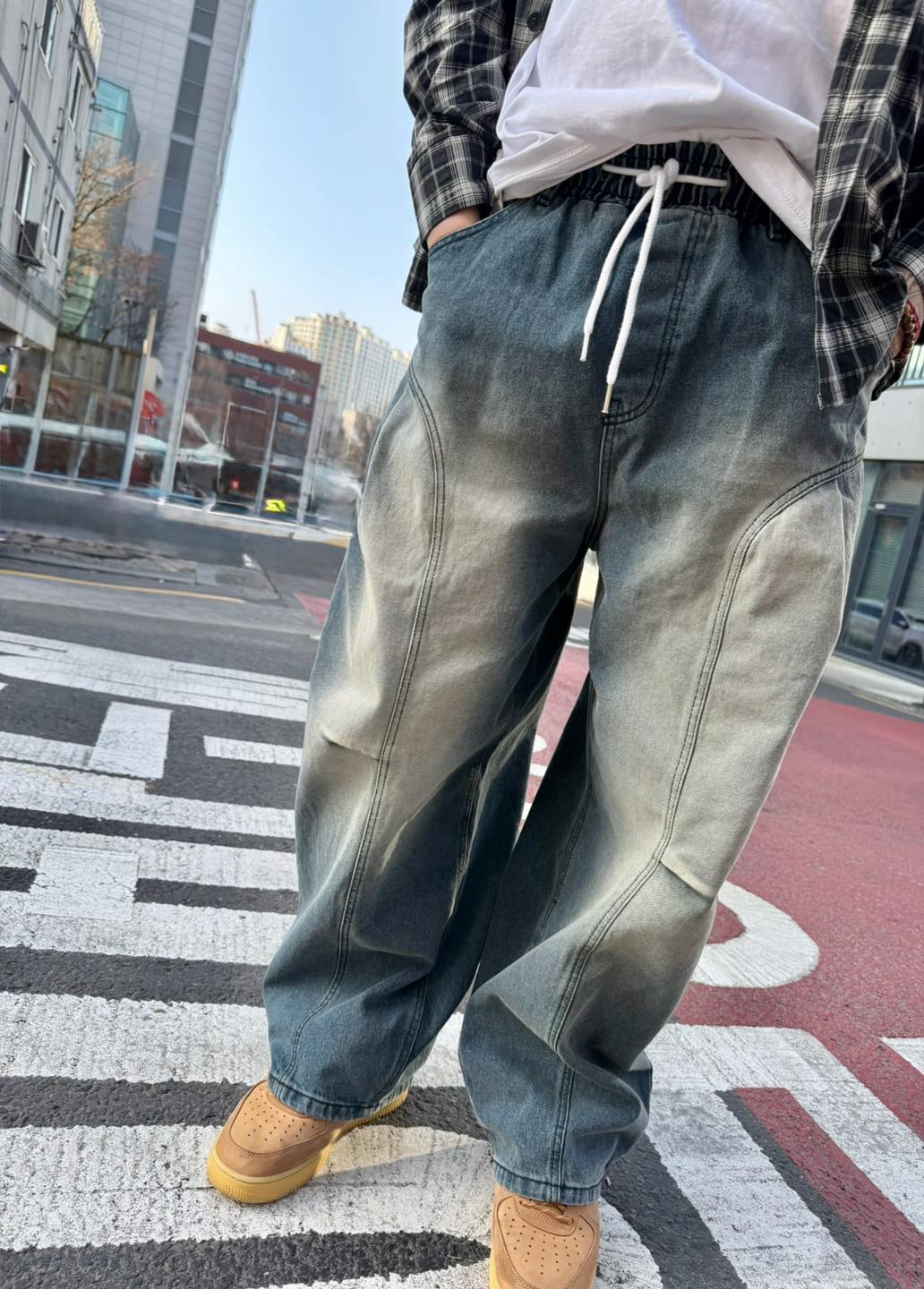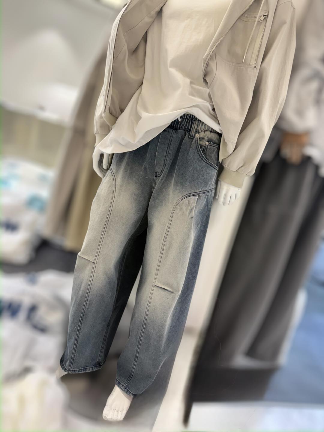 這是是設計感很強的韓系立體剪裁牛仔褲,採用 3D立體結構剪裁設計,