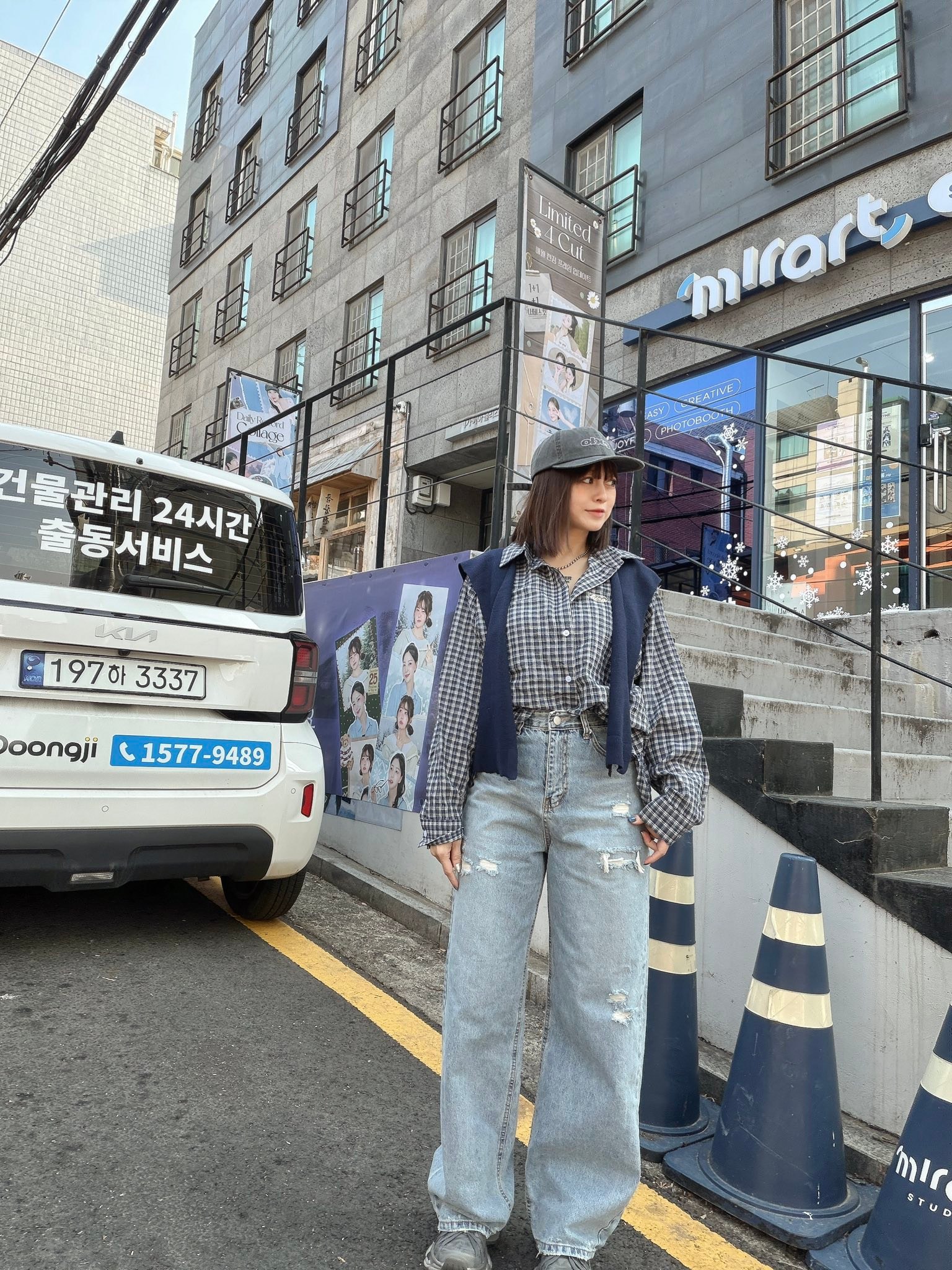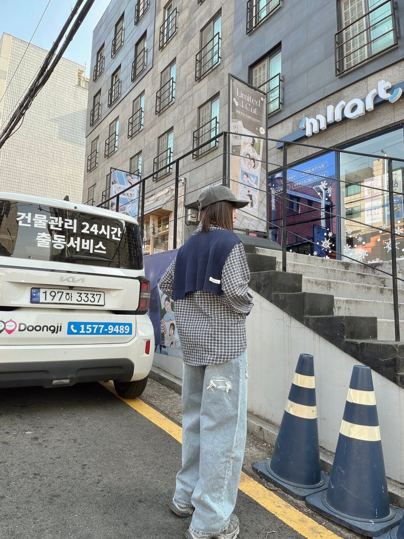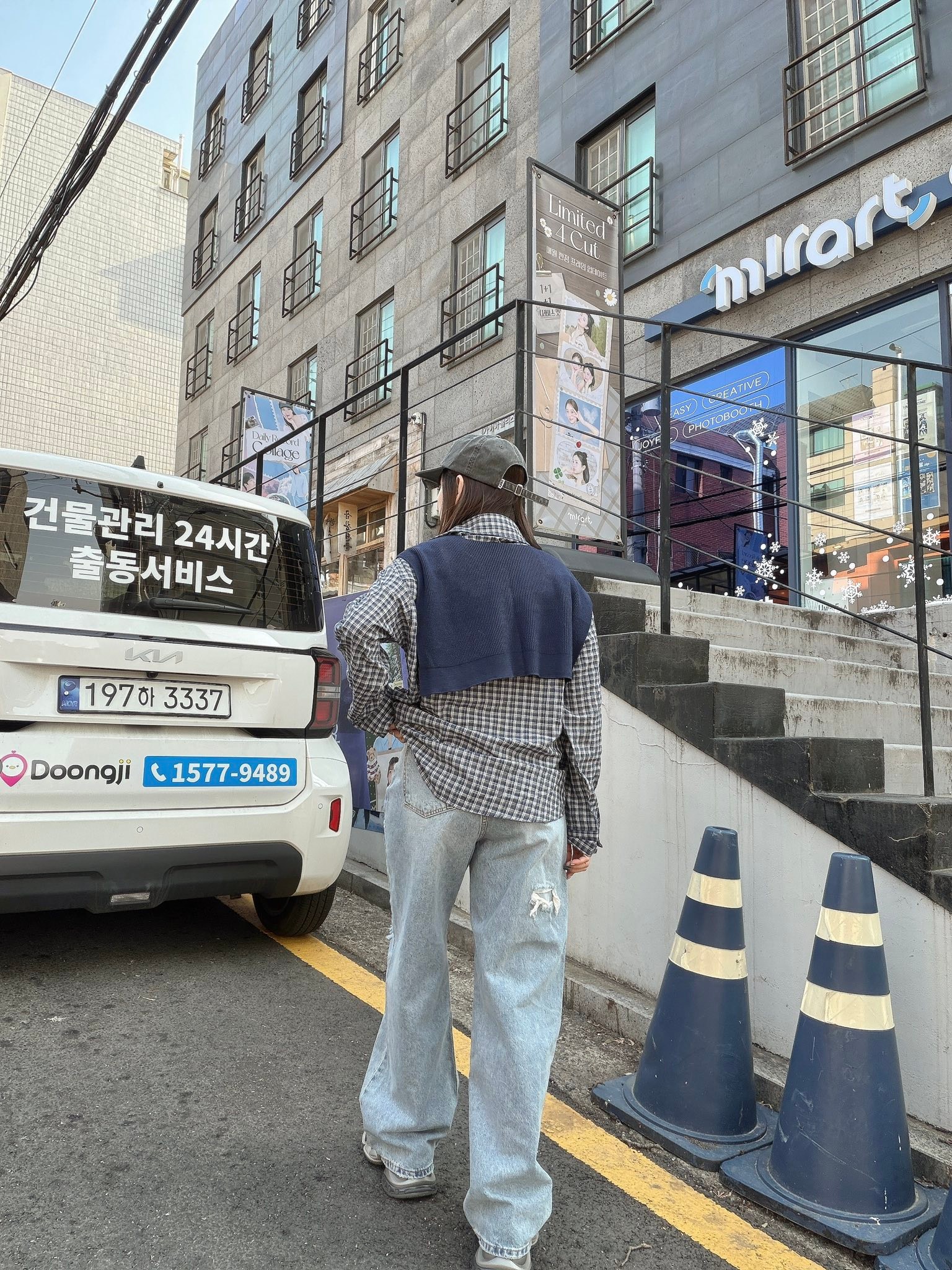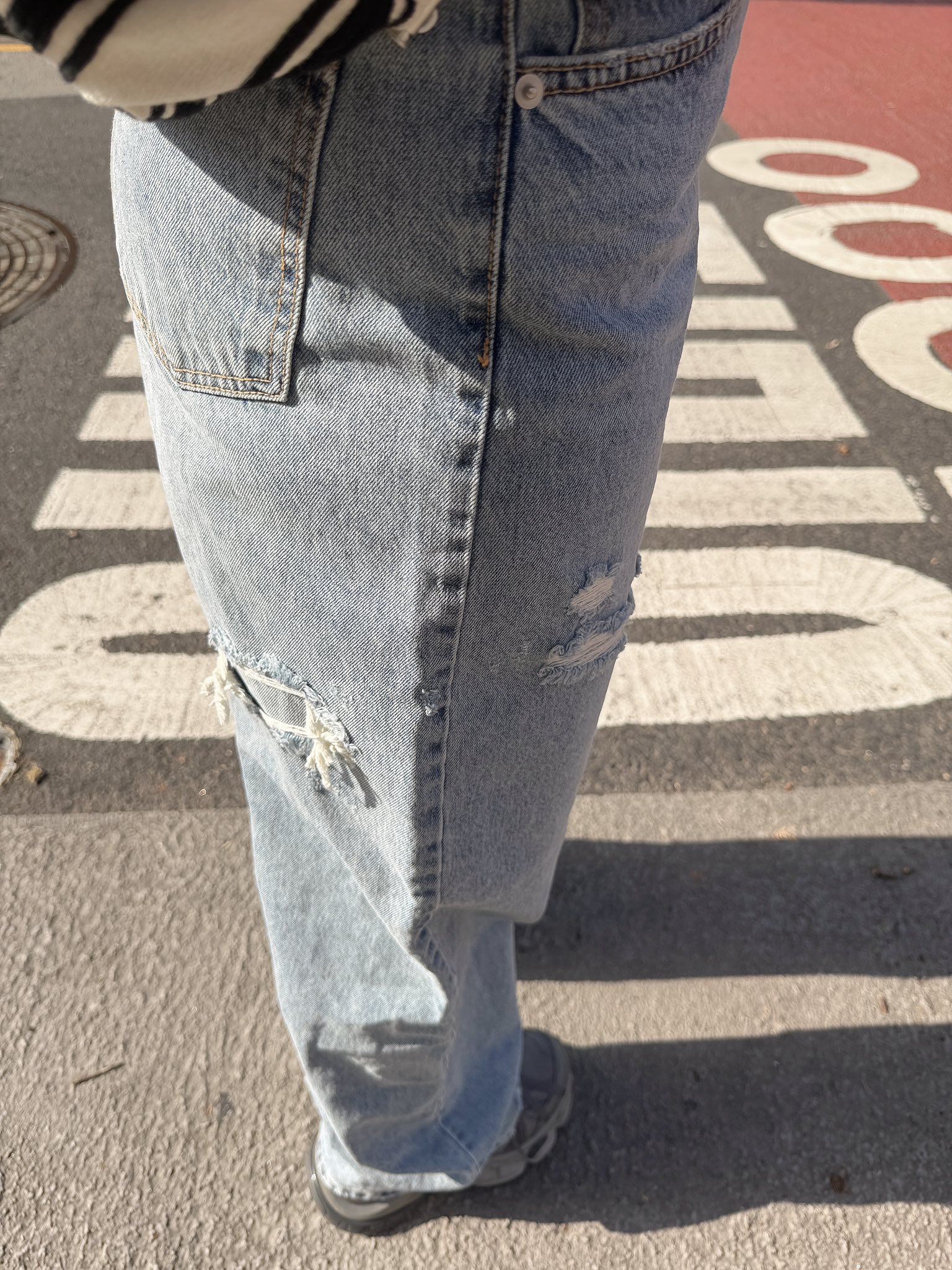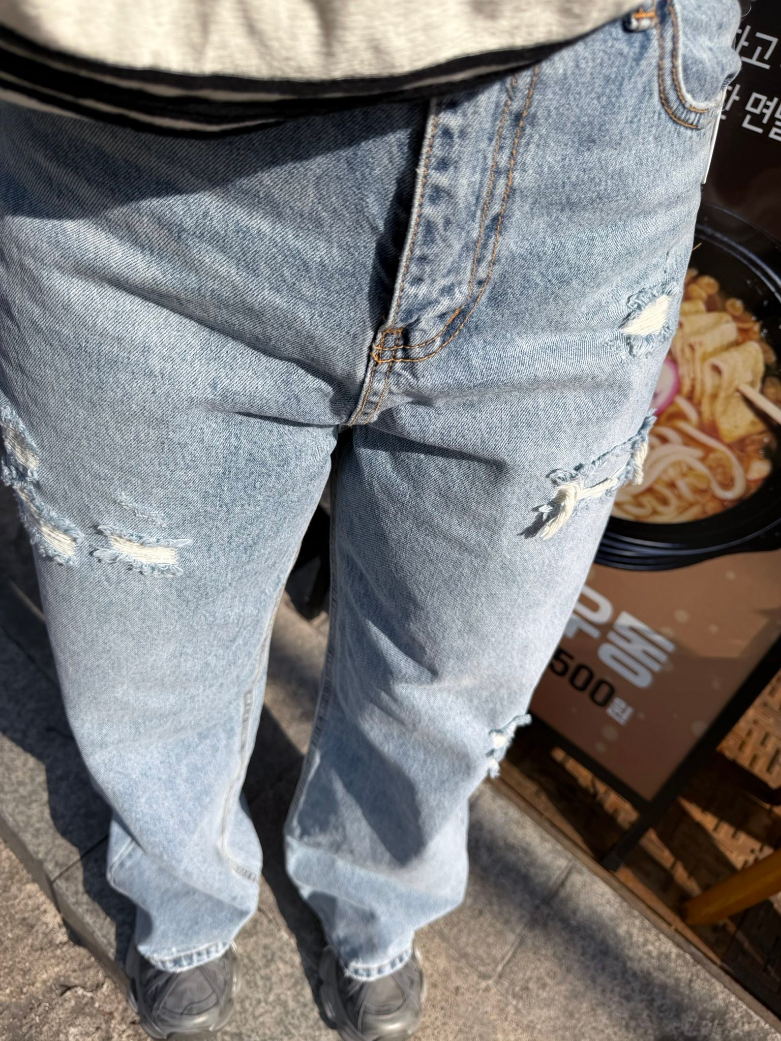 外層做出自然磨損感的刷破,裡面其實有牛仔補布設計,穿起來不會露腿