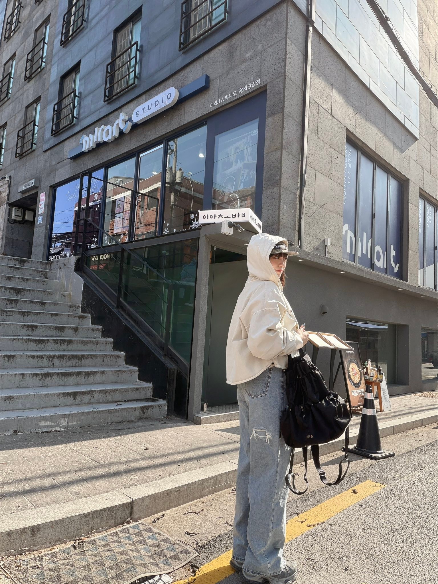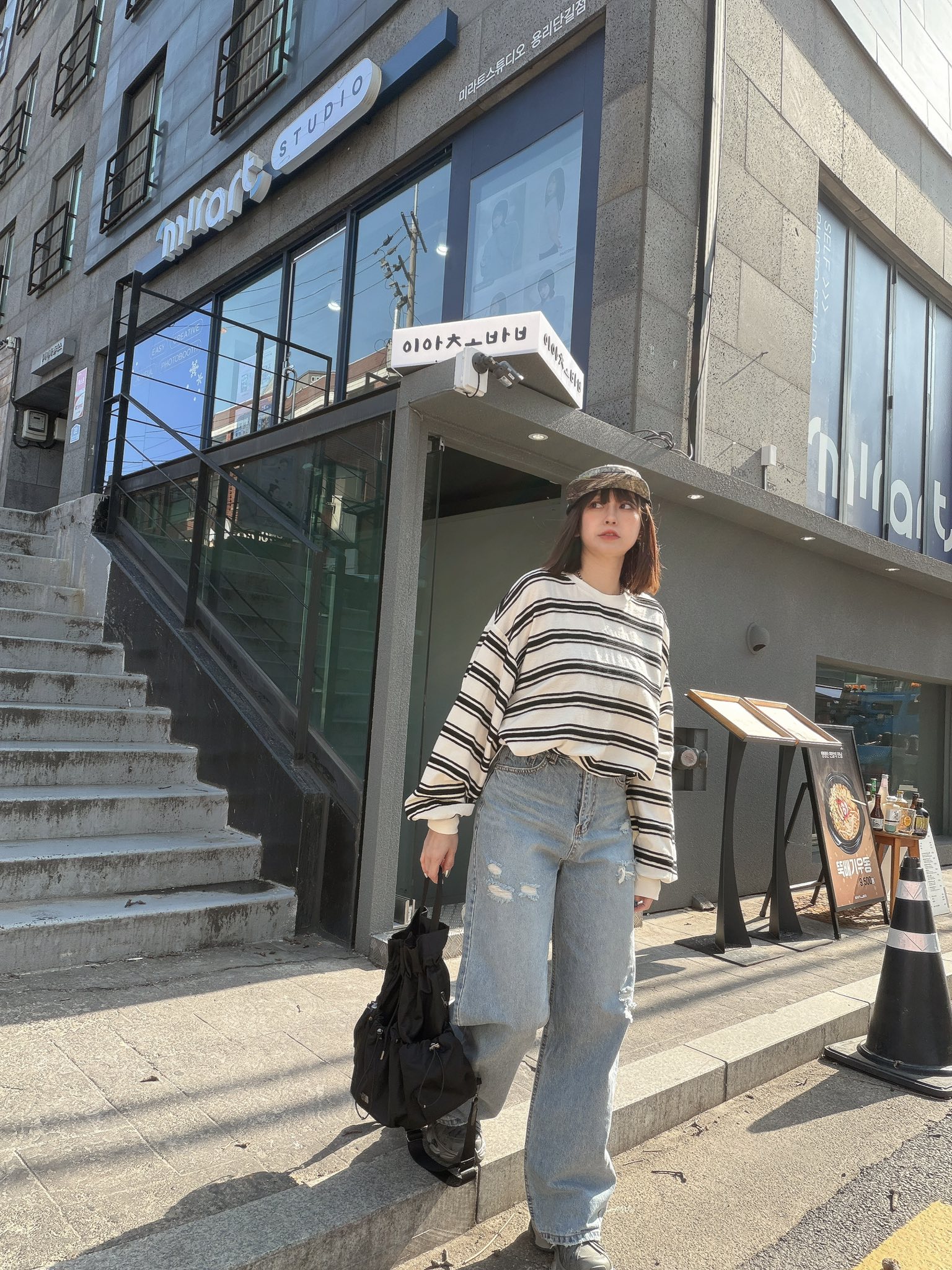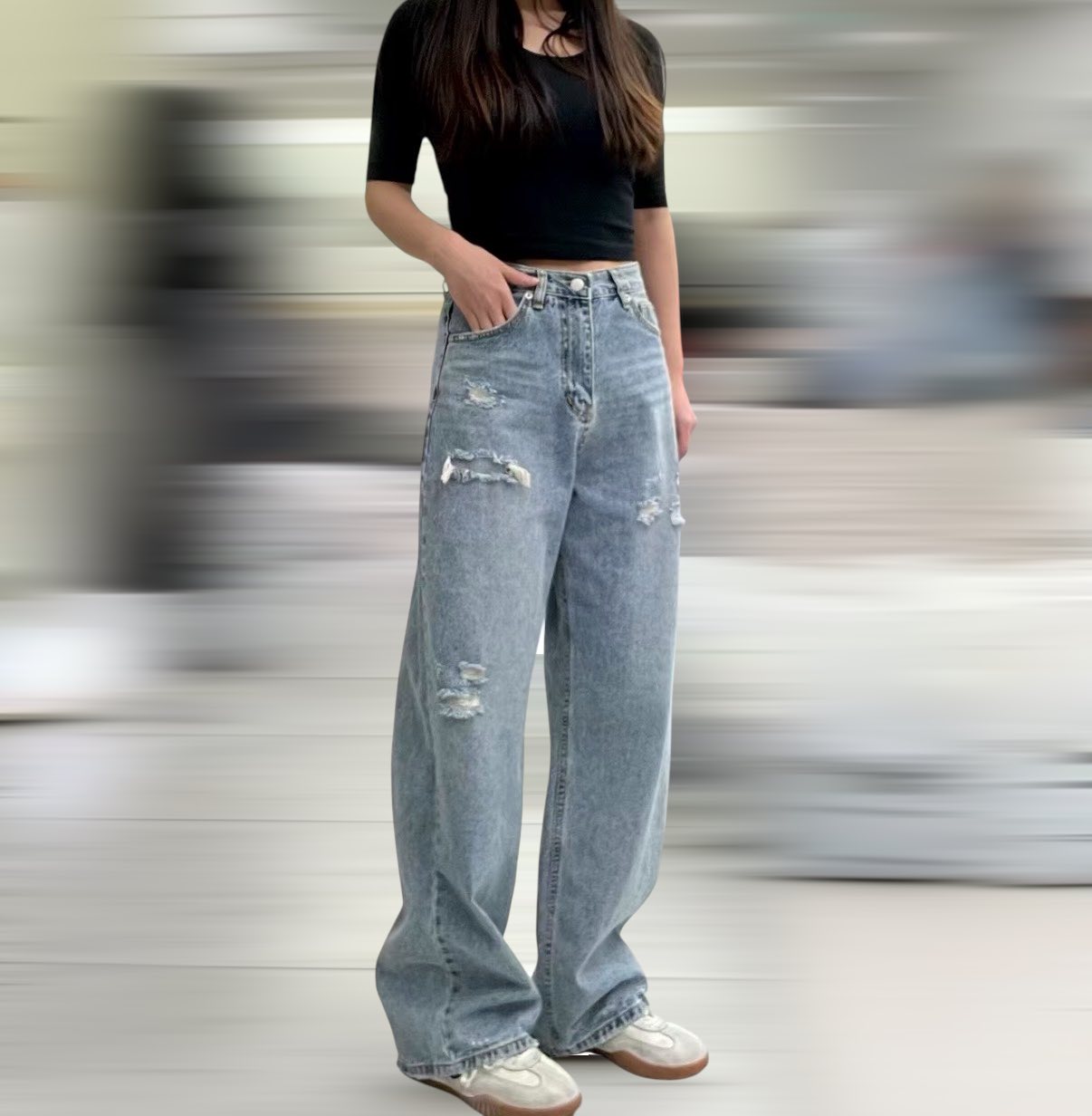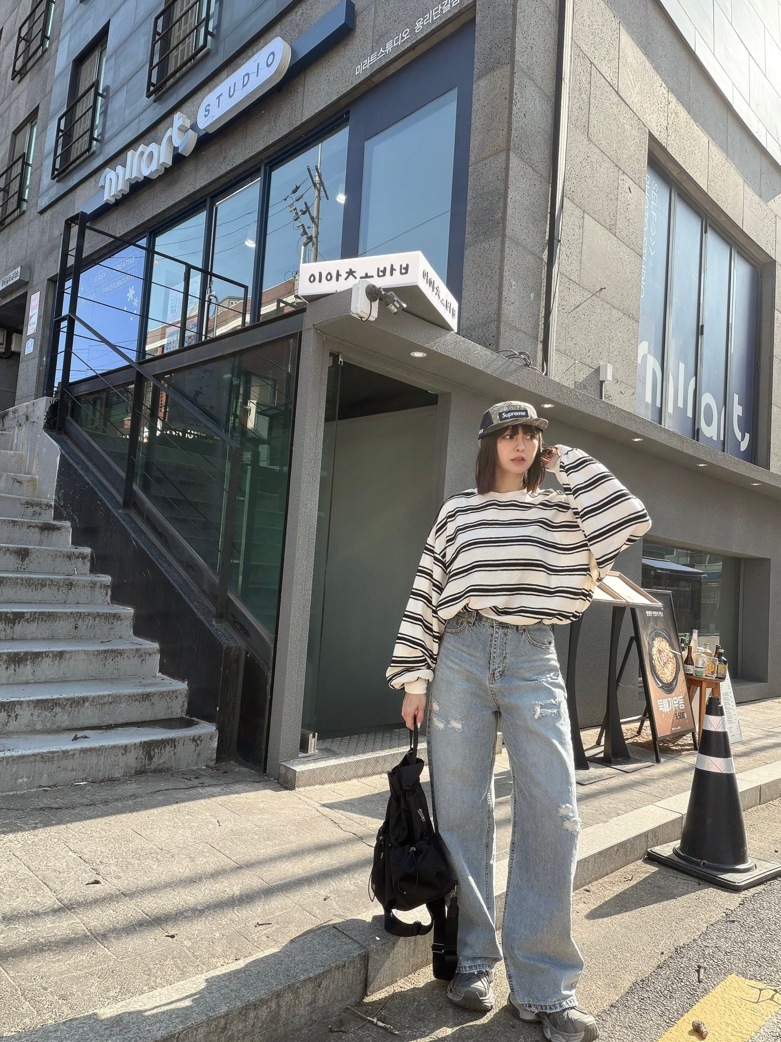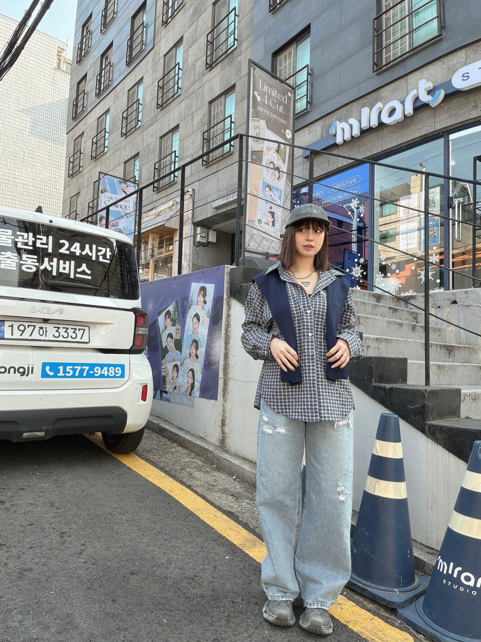 外層做出自然磨損感的刷破,裡面其實有牛仔補布設計,穿起來不會露腿