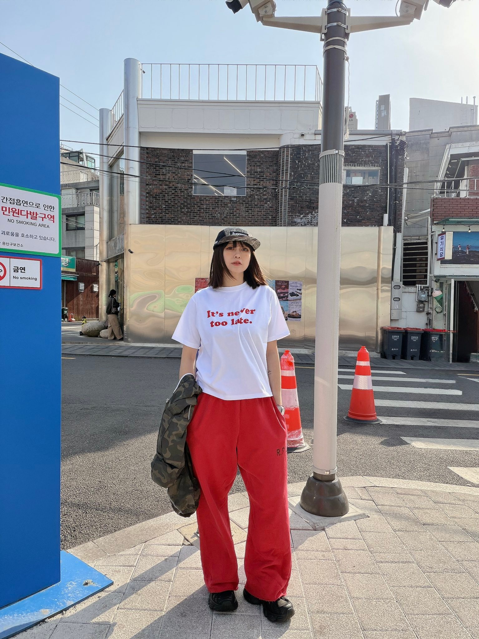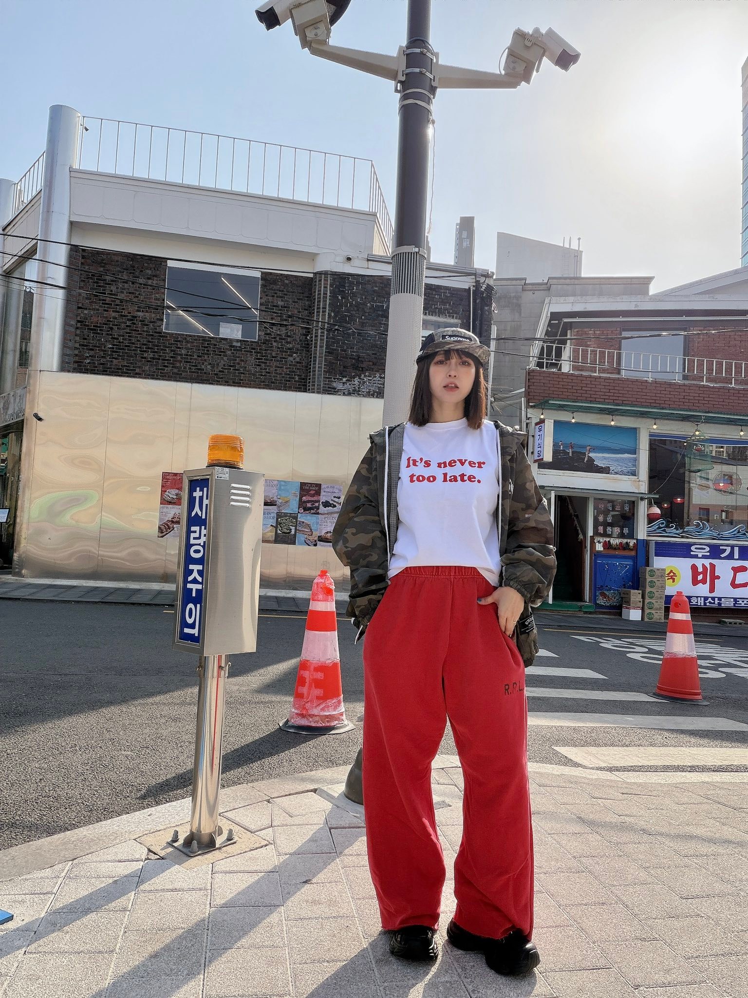穿起來會有現在很流行的刷色棉褲在韓國其實很受歡迎,因為穿起來會比普通運動褲更有型。