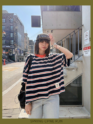 • 韓國連線 BL55 亮色領布標籤條紋寬版TEE NT.$679