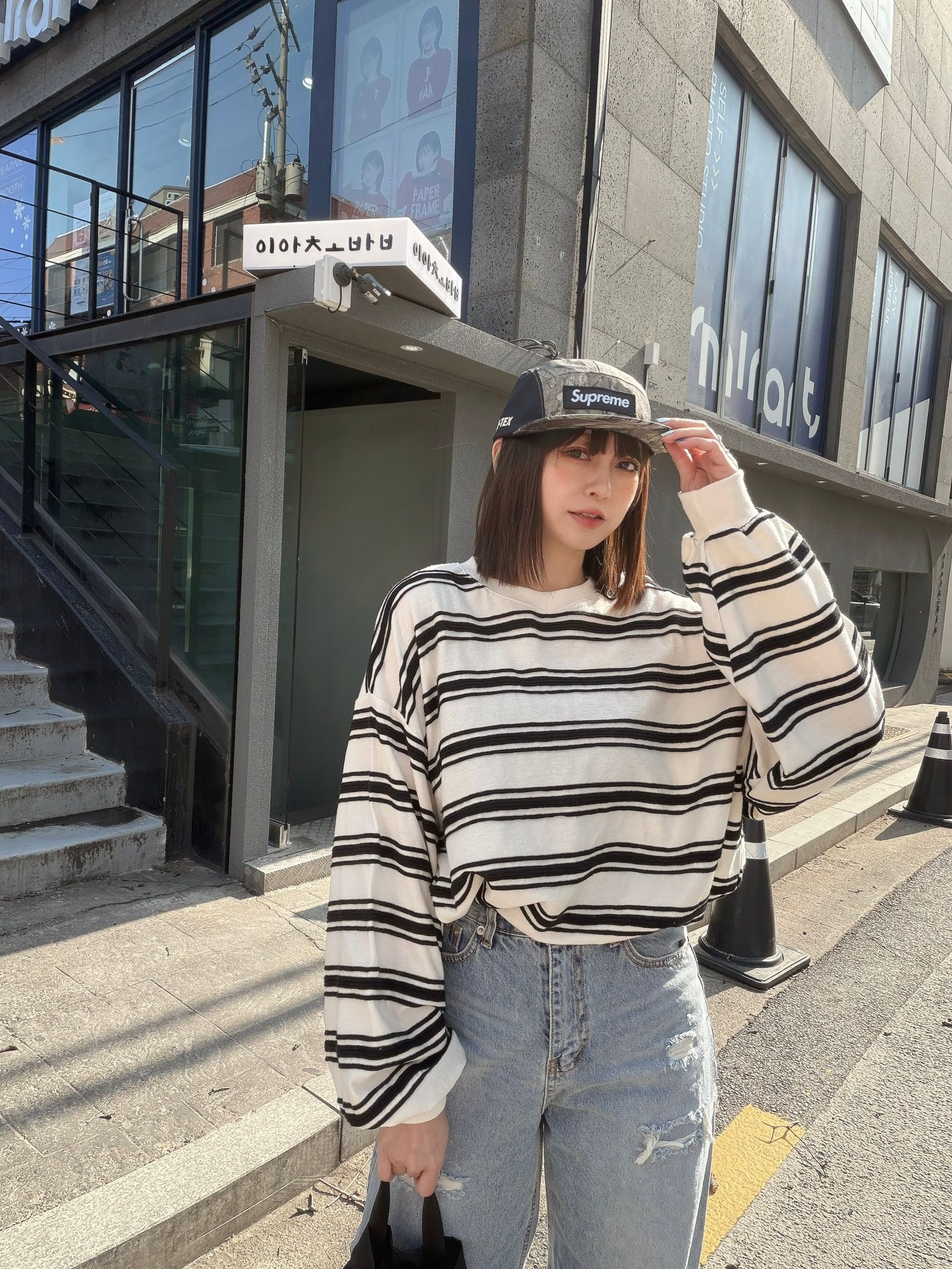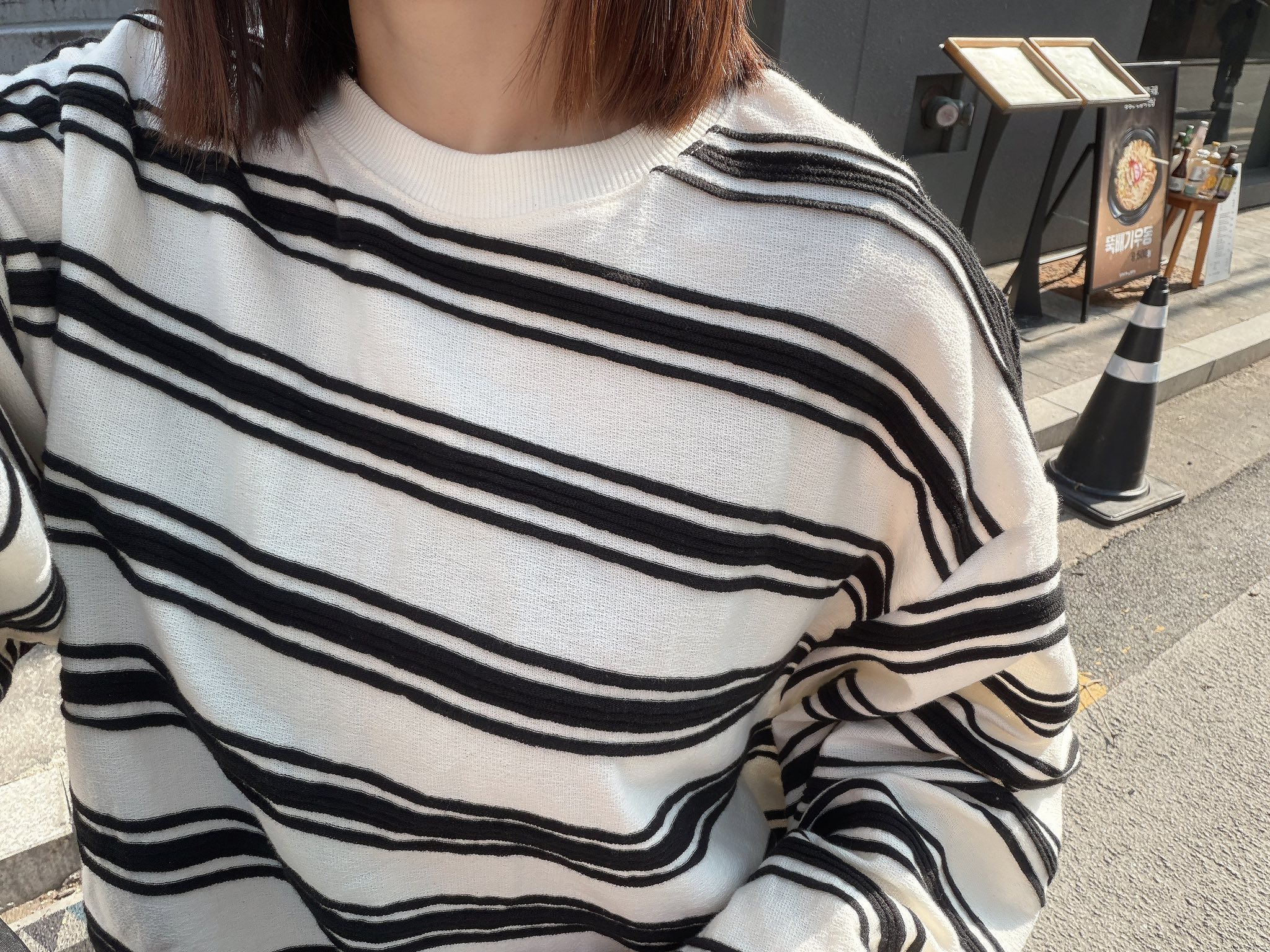 布料柔軟的春裝材質!下擺有抽繩可以變化穿起來不會只是普通條紋衣,
