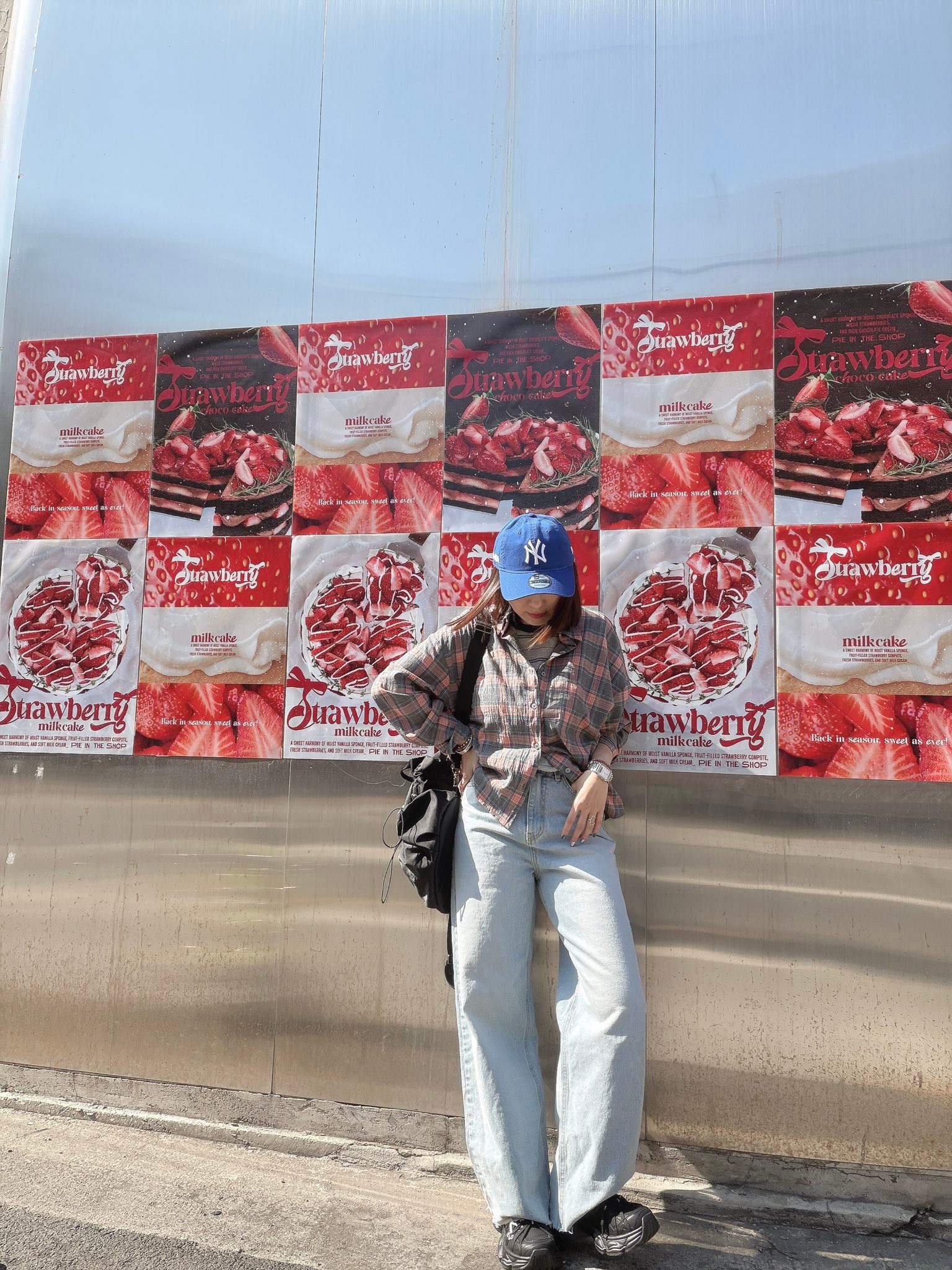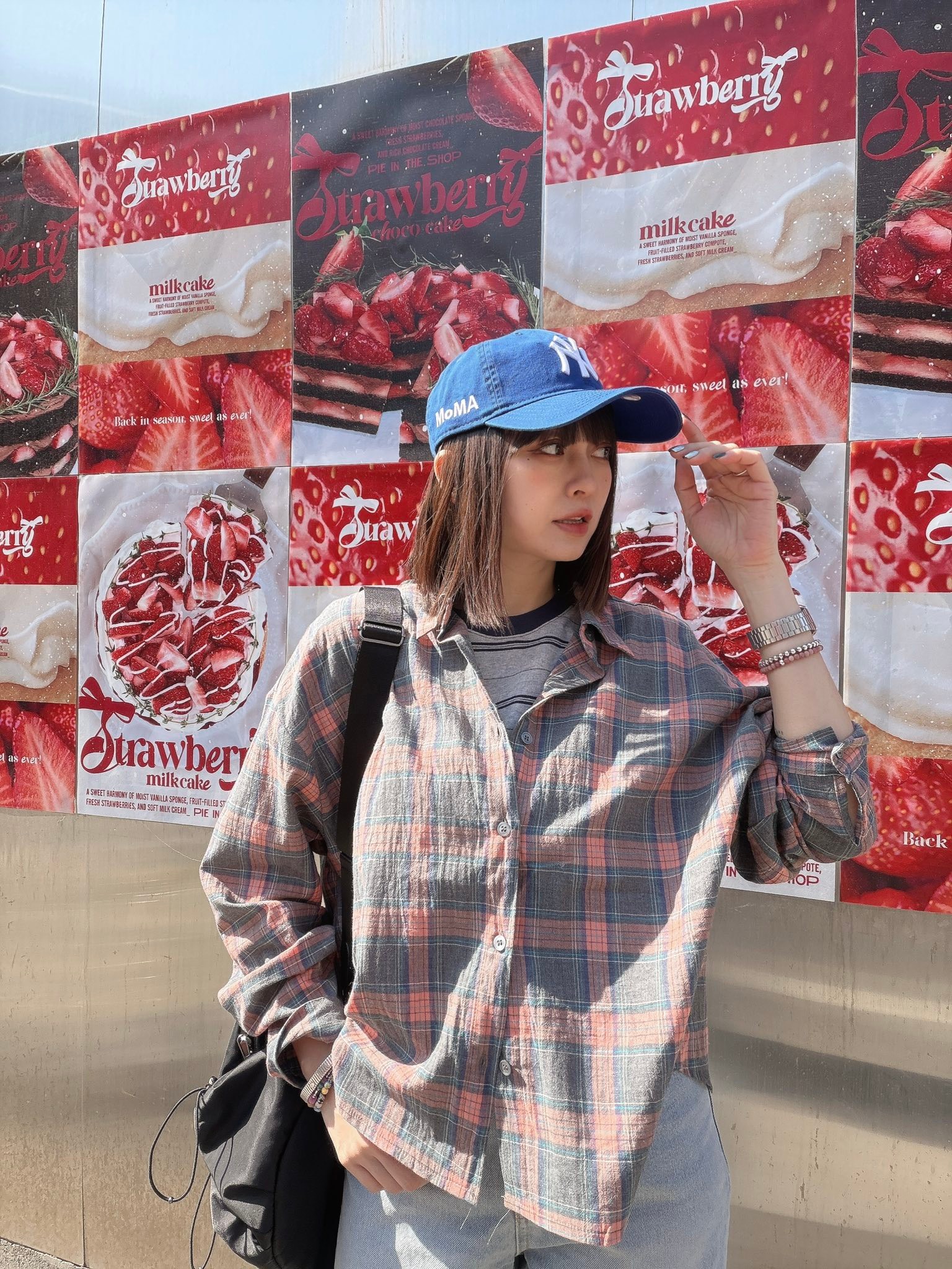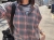 而是用 灰藍底+霧粉橘格紋去搭