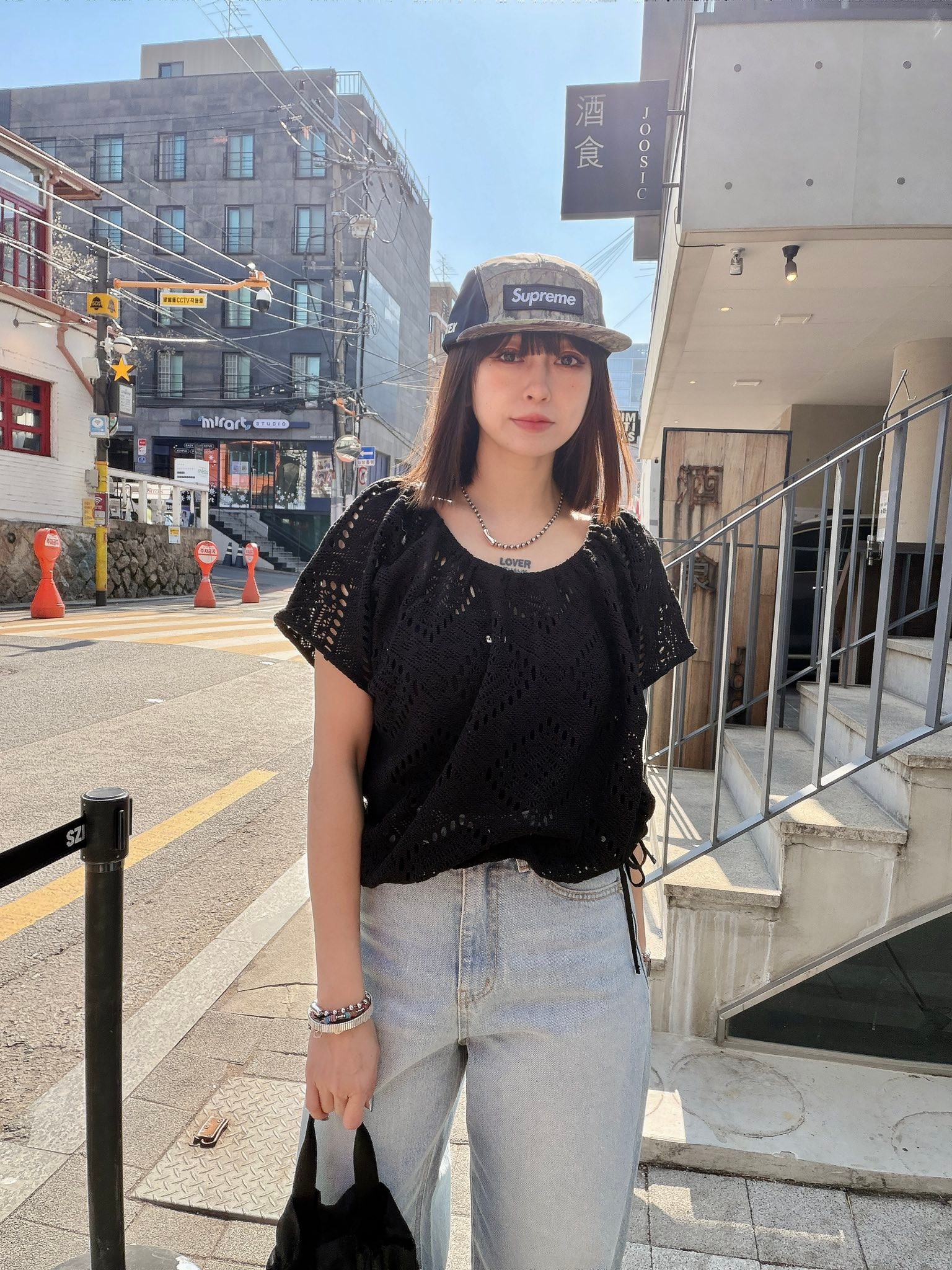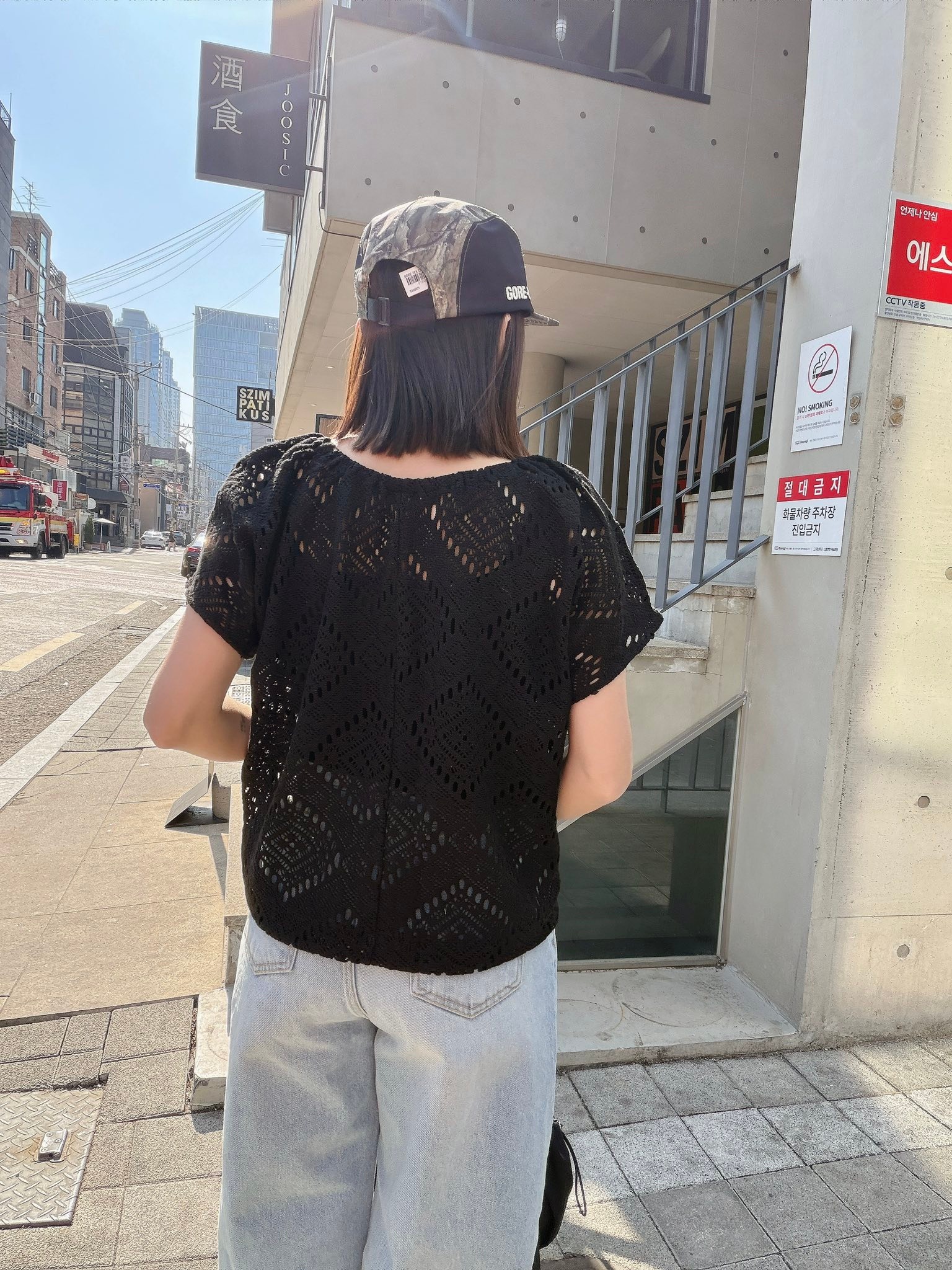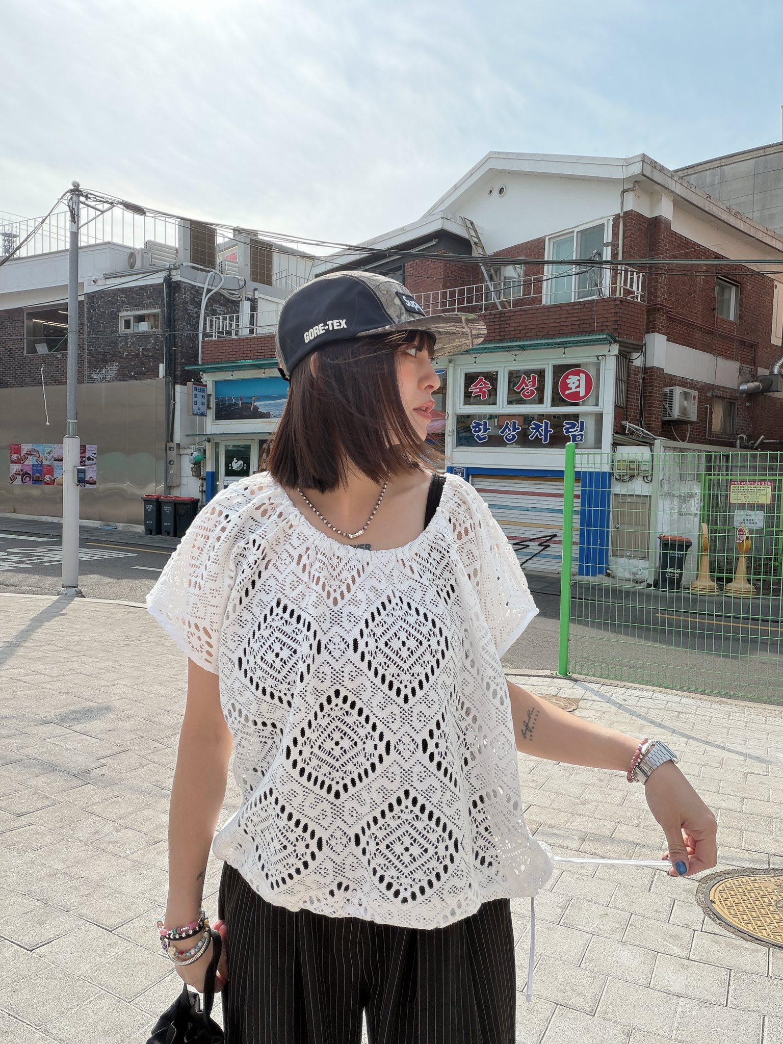 也可以依照下半身需抽緊下擺,不用扎衣服也可以很好看