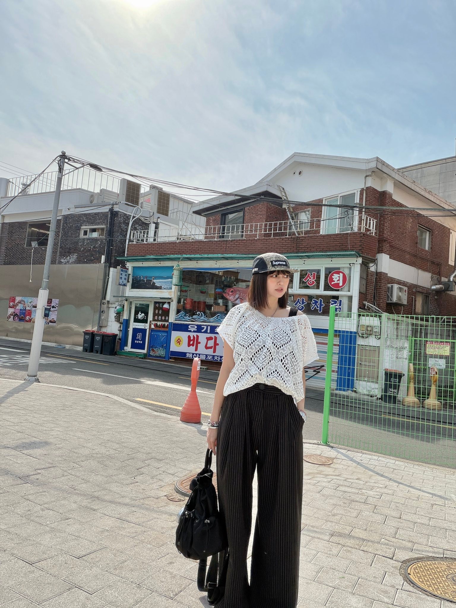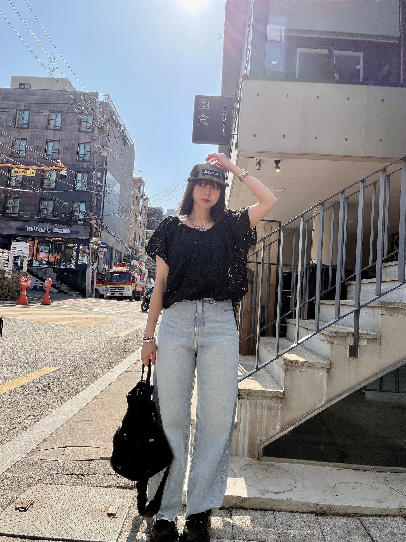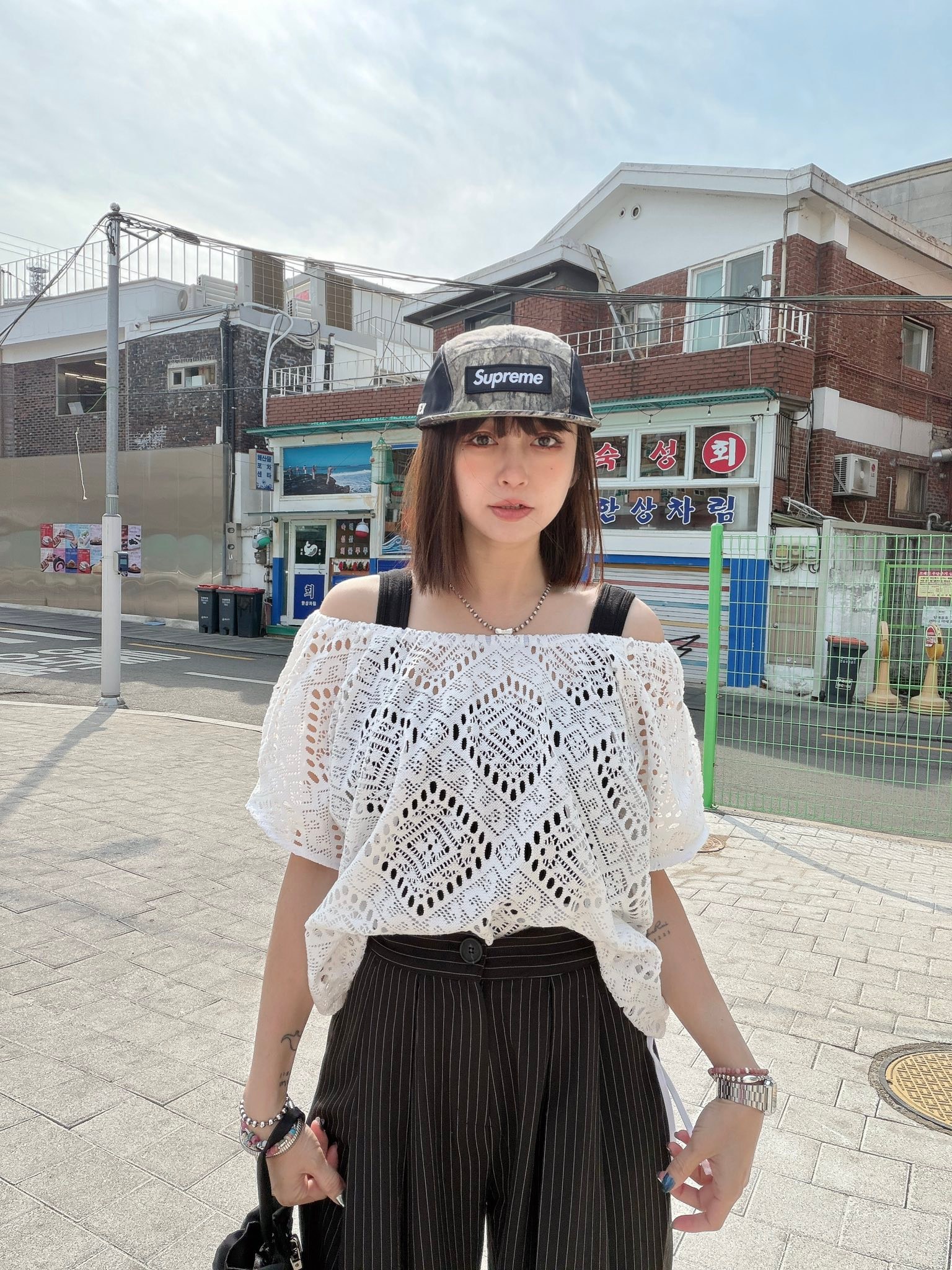 也可以依照下半身需抽緊下擺,不用扎衣服也可以很好看