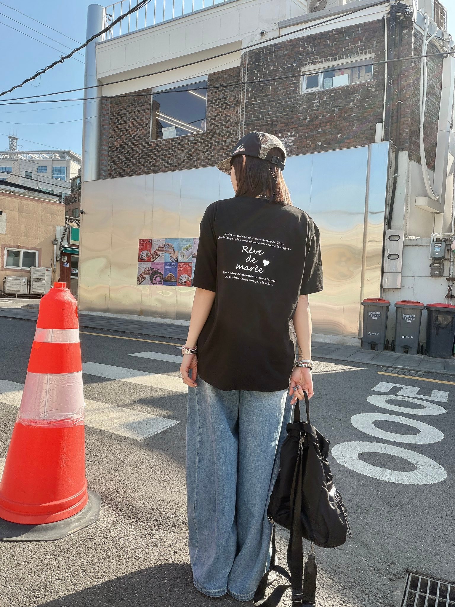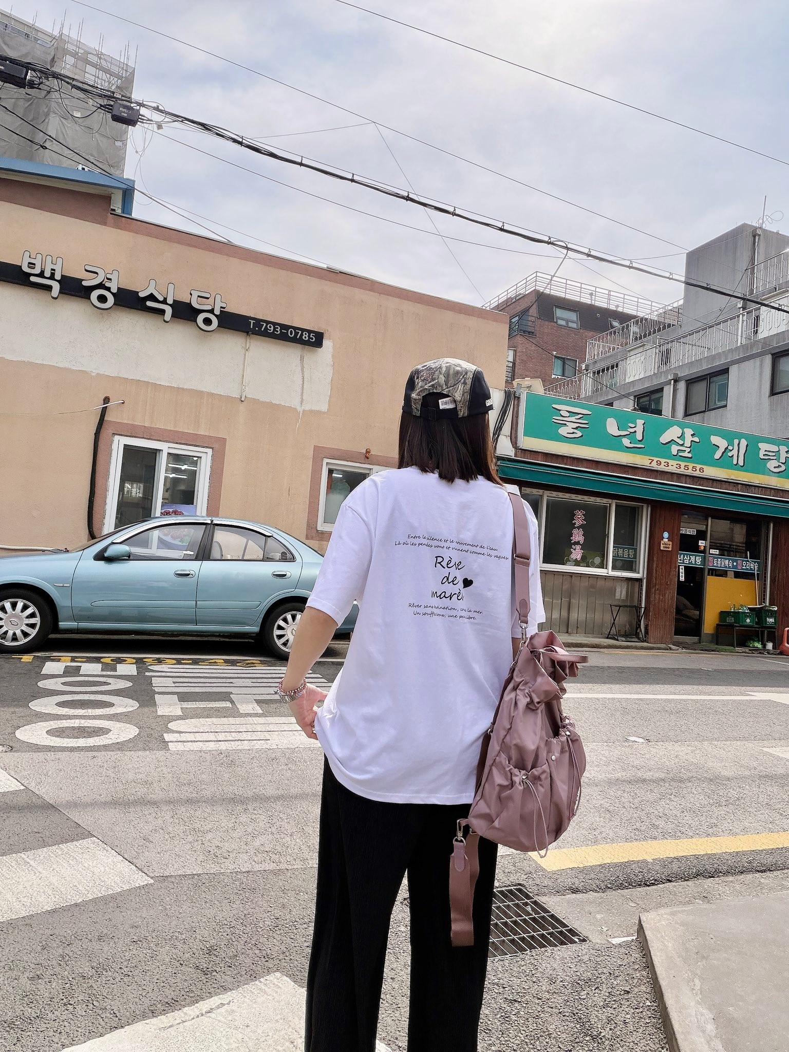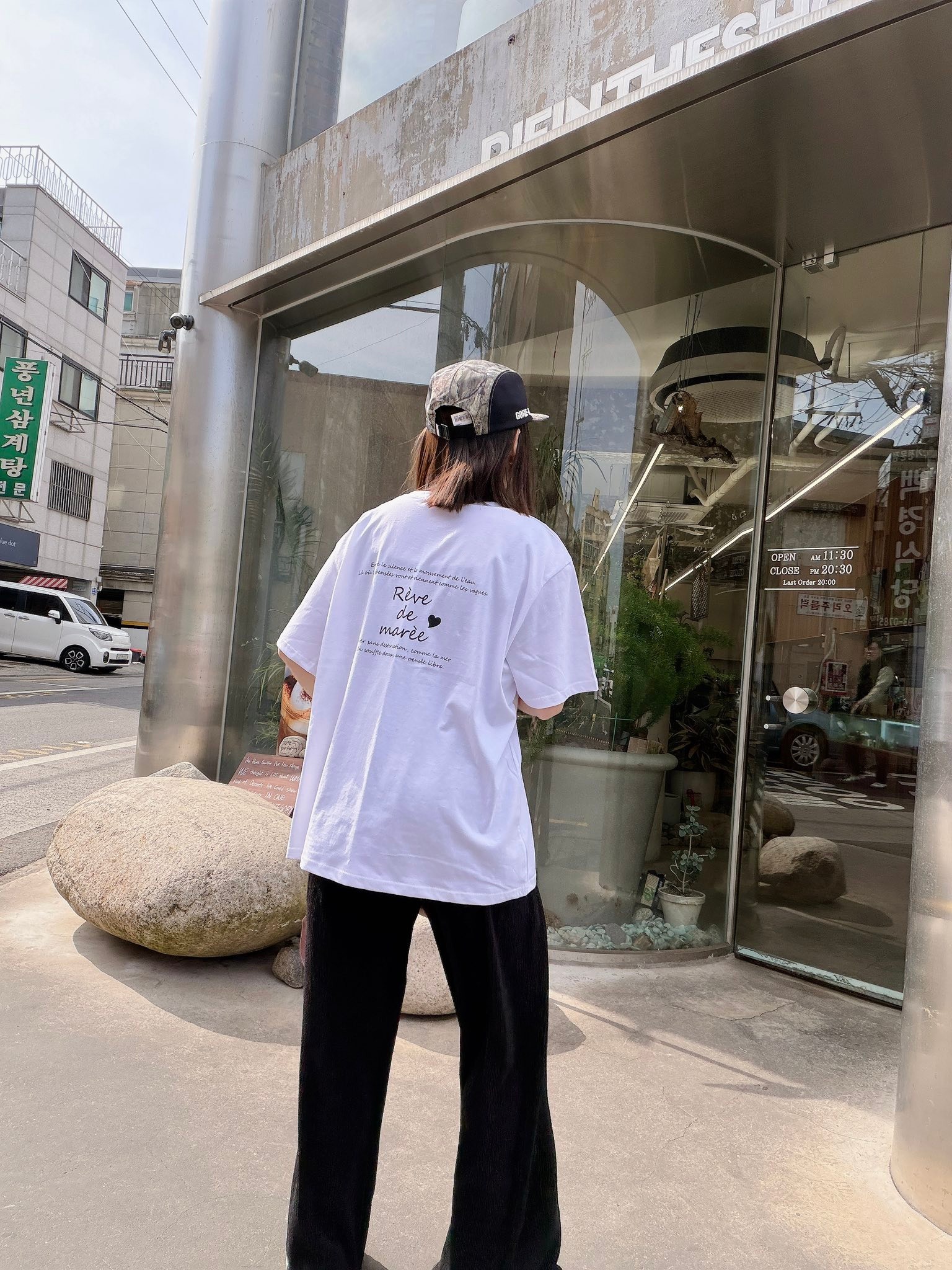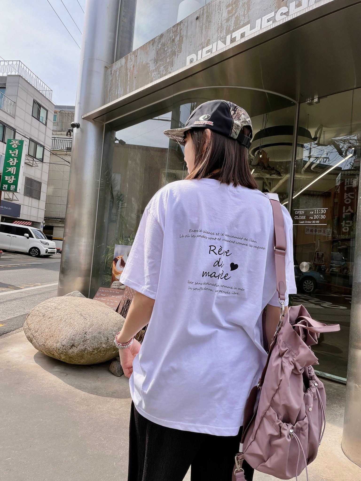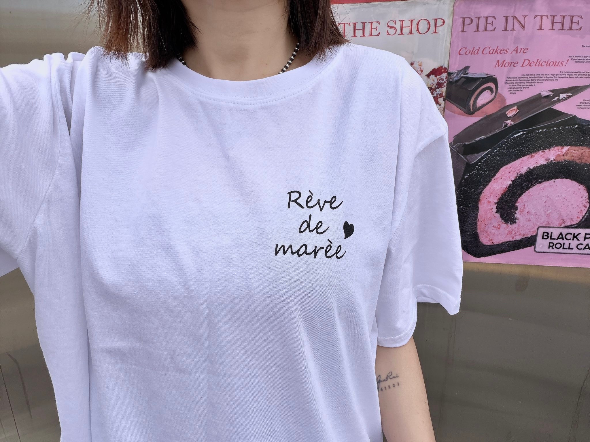 簡約的黑色文字搭配愛心圖案,在白色T恤上顯得特別乾淨、有質感。