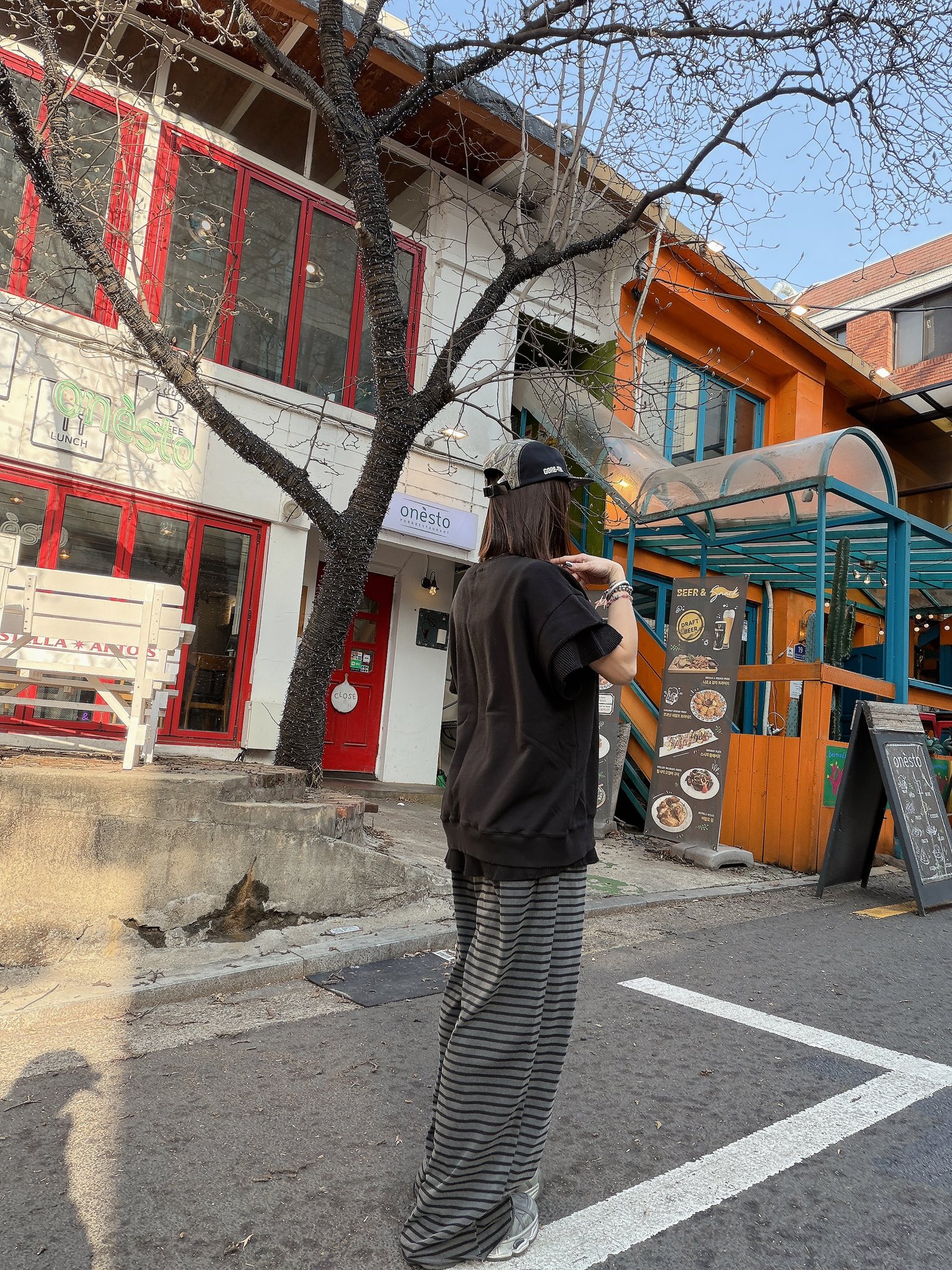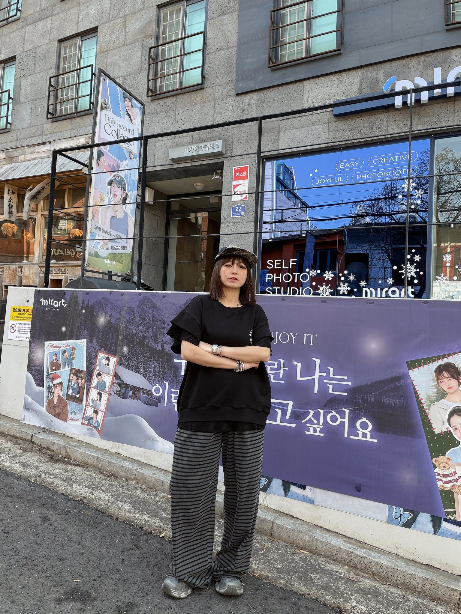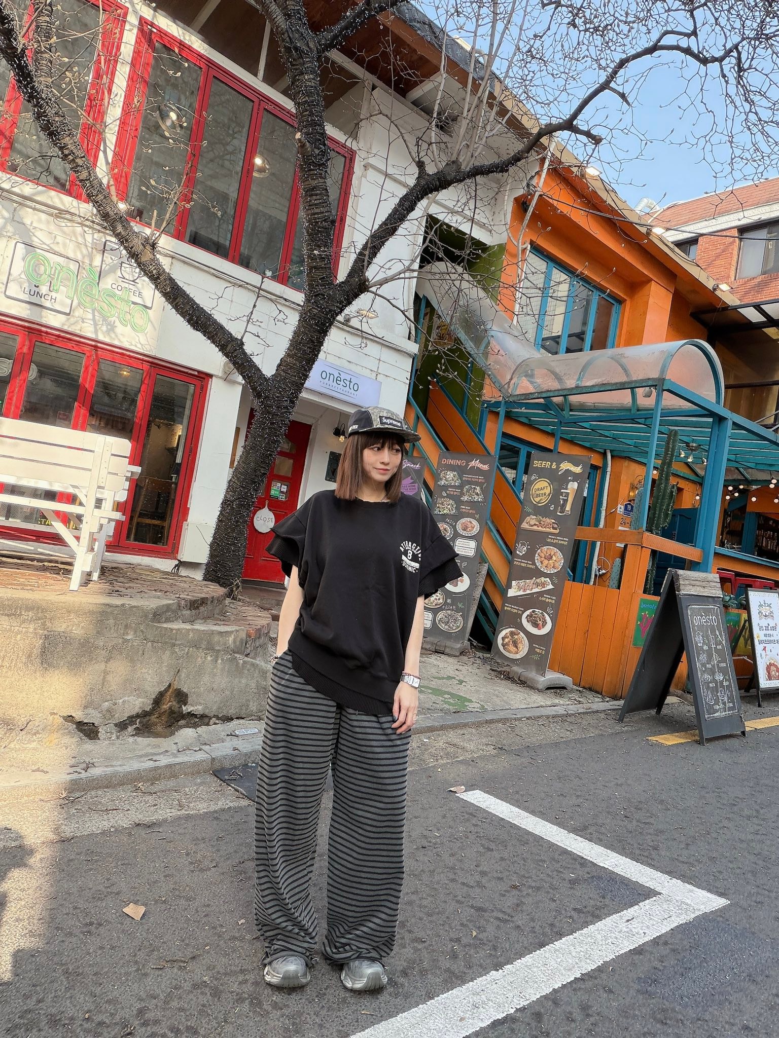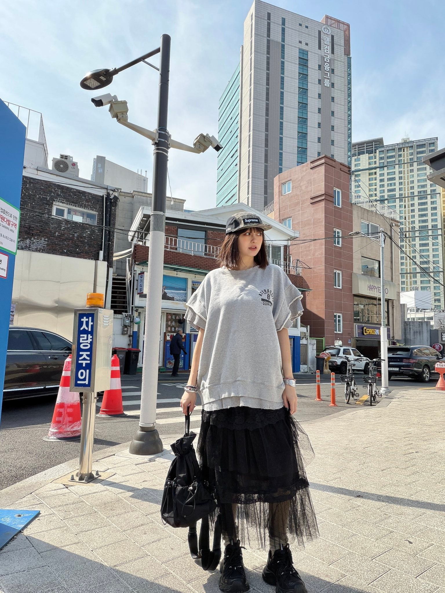 整件是韓系很喜歡的 肩線自然往下,穿起來不會貼身,整體輪廓更隨性、修飾身形。