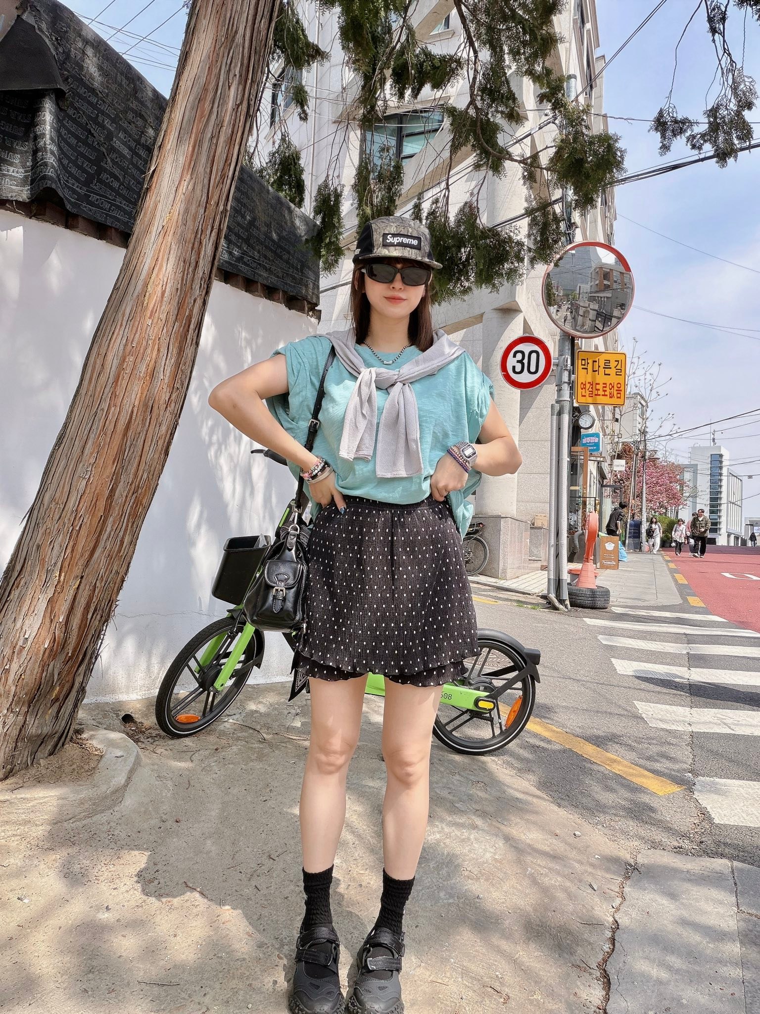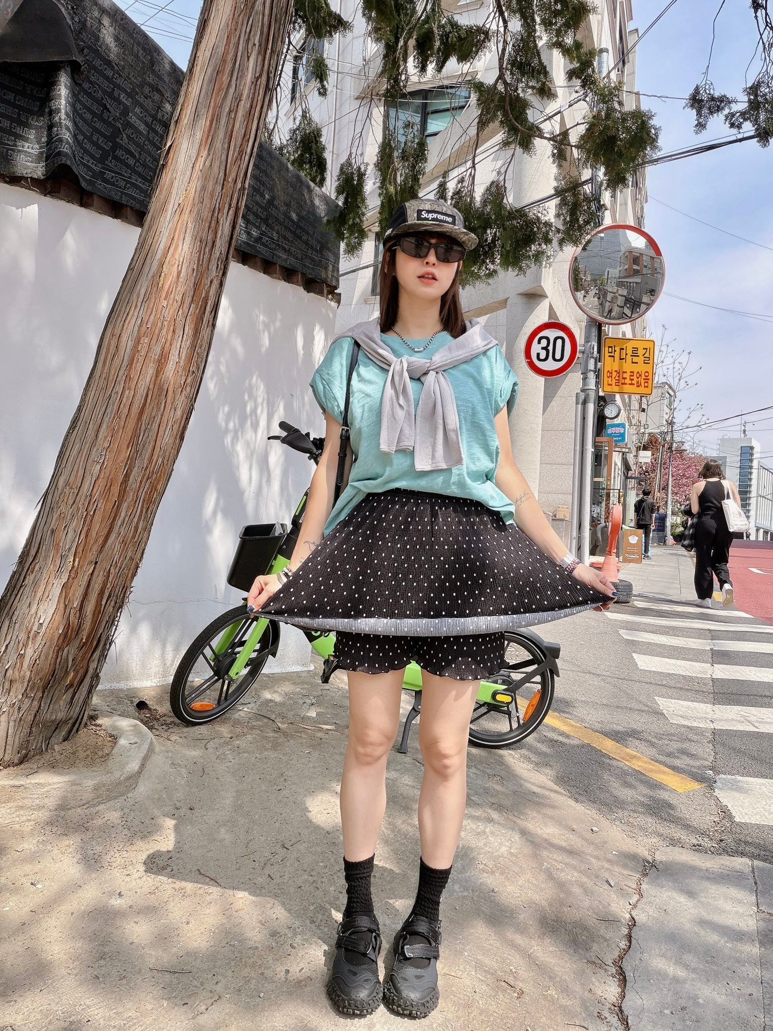 這款褲裙版型結合了裙子的可愛感與短褲的安心感,穿起來活動方便,也不怕曝光