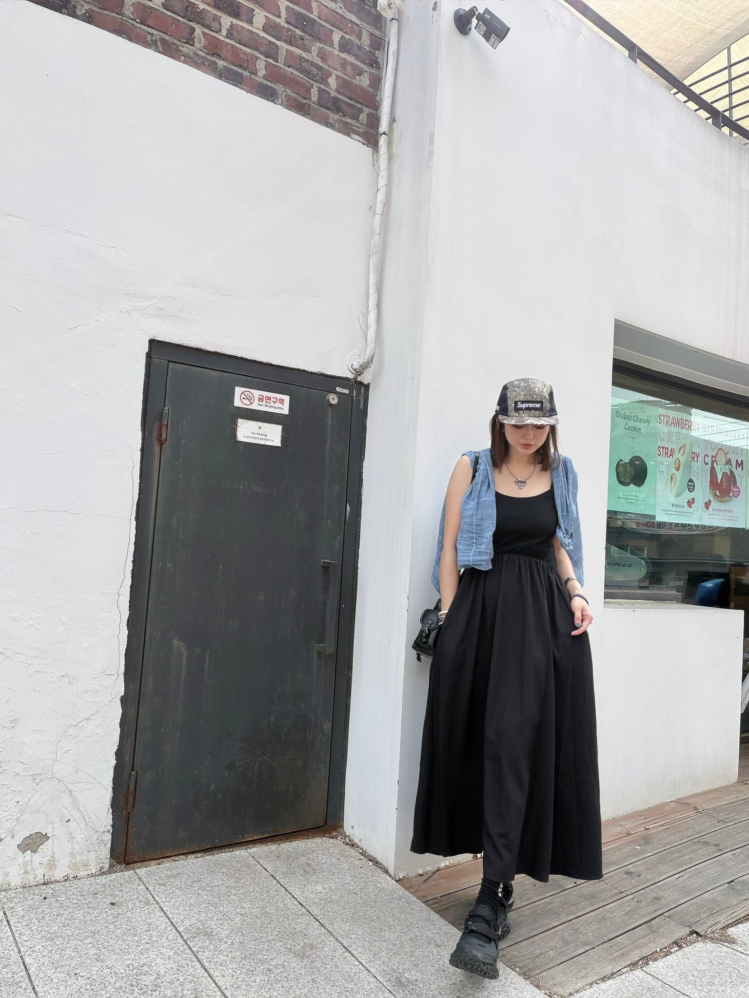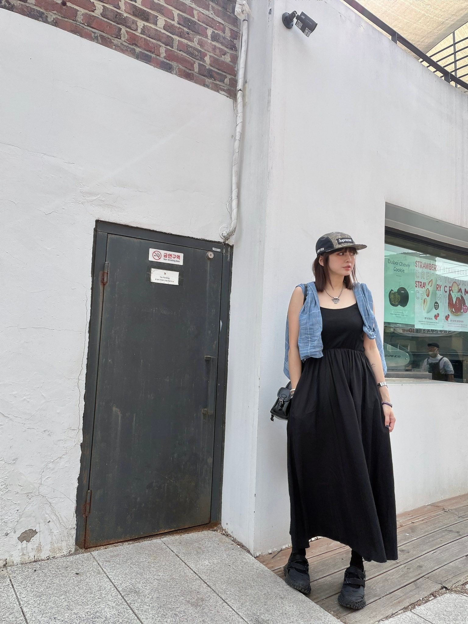 這件細肩洋裝,超好穿!夏天完全可以外面罩個小外罩!