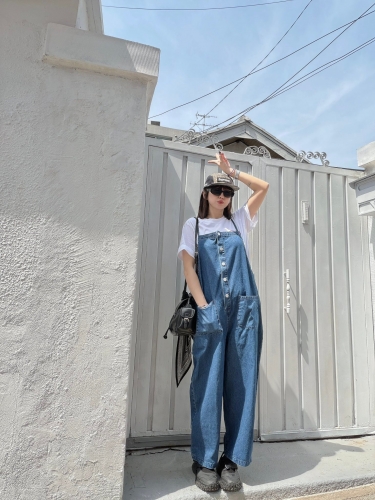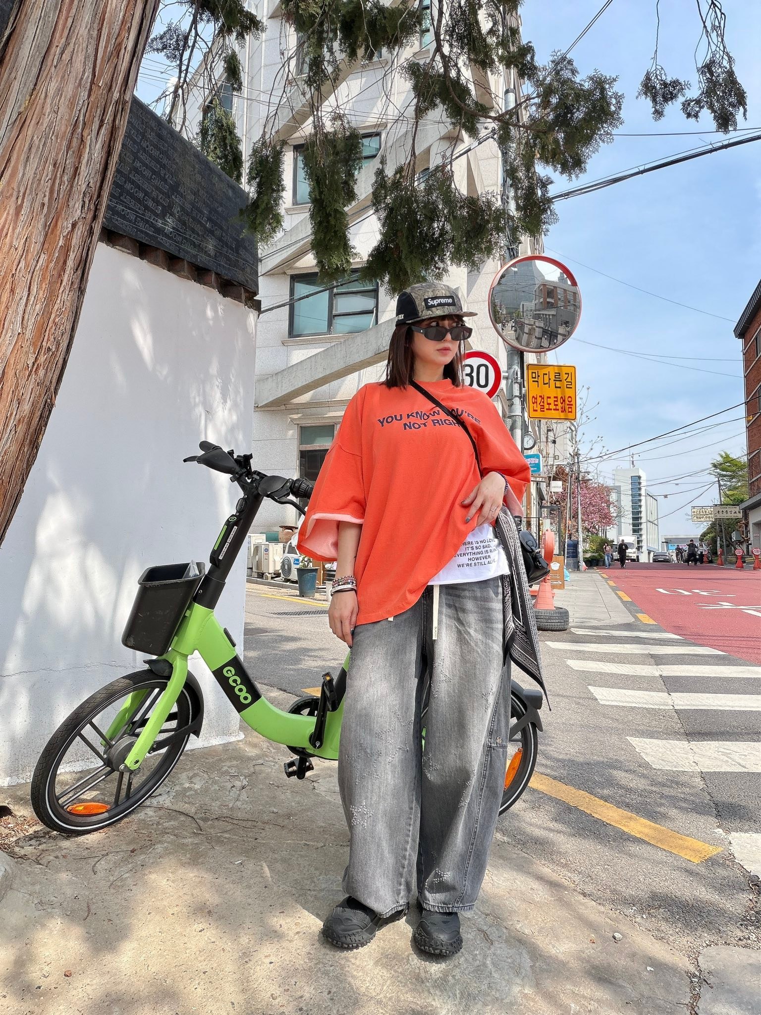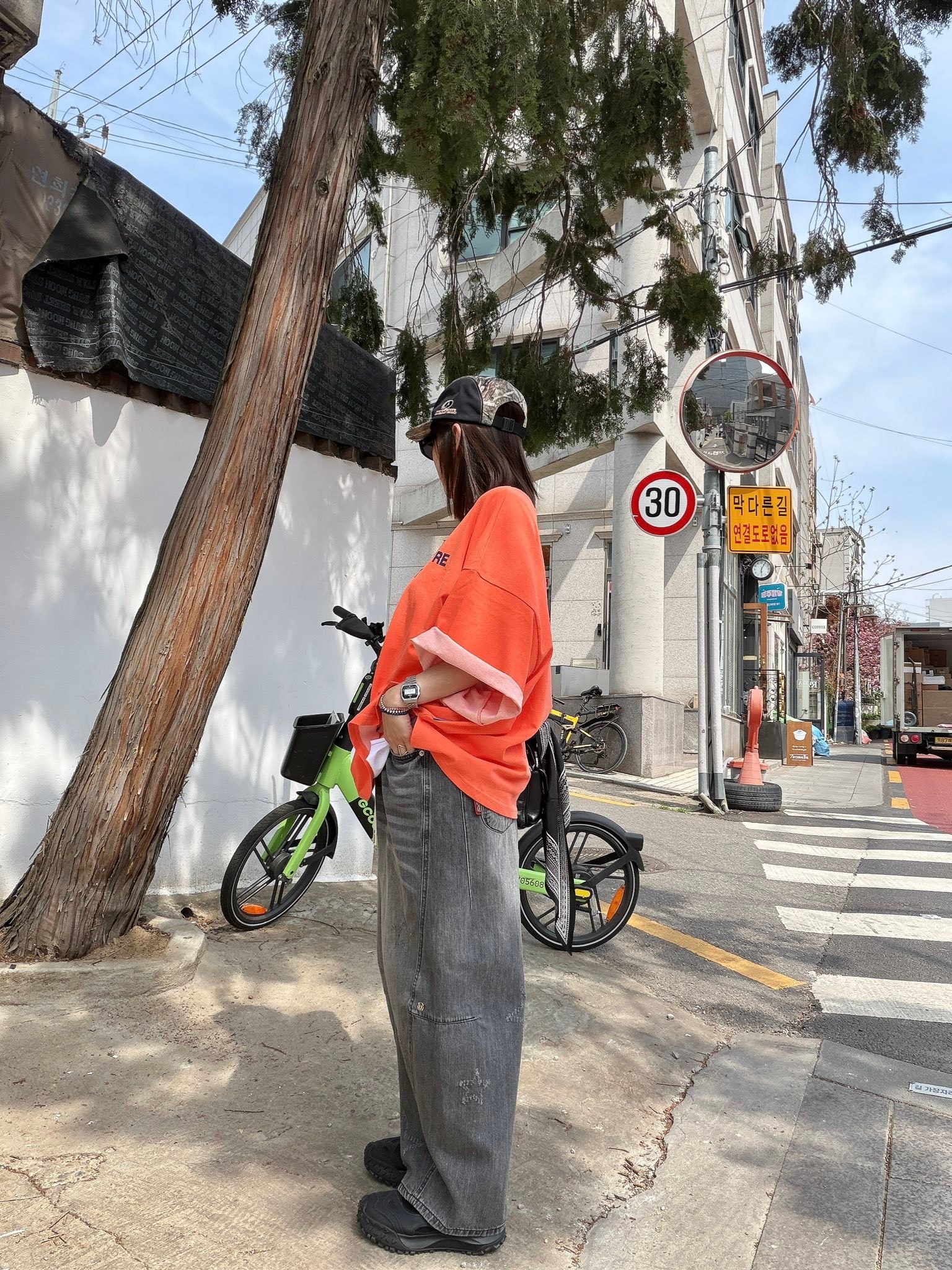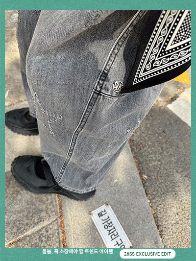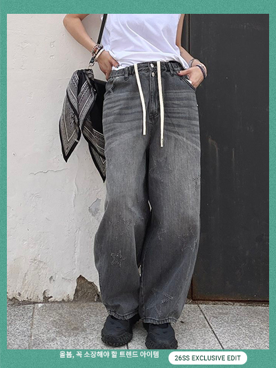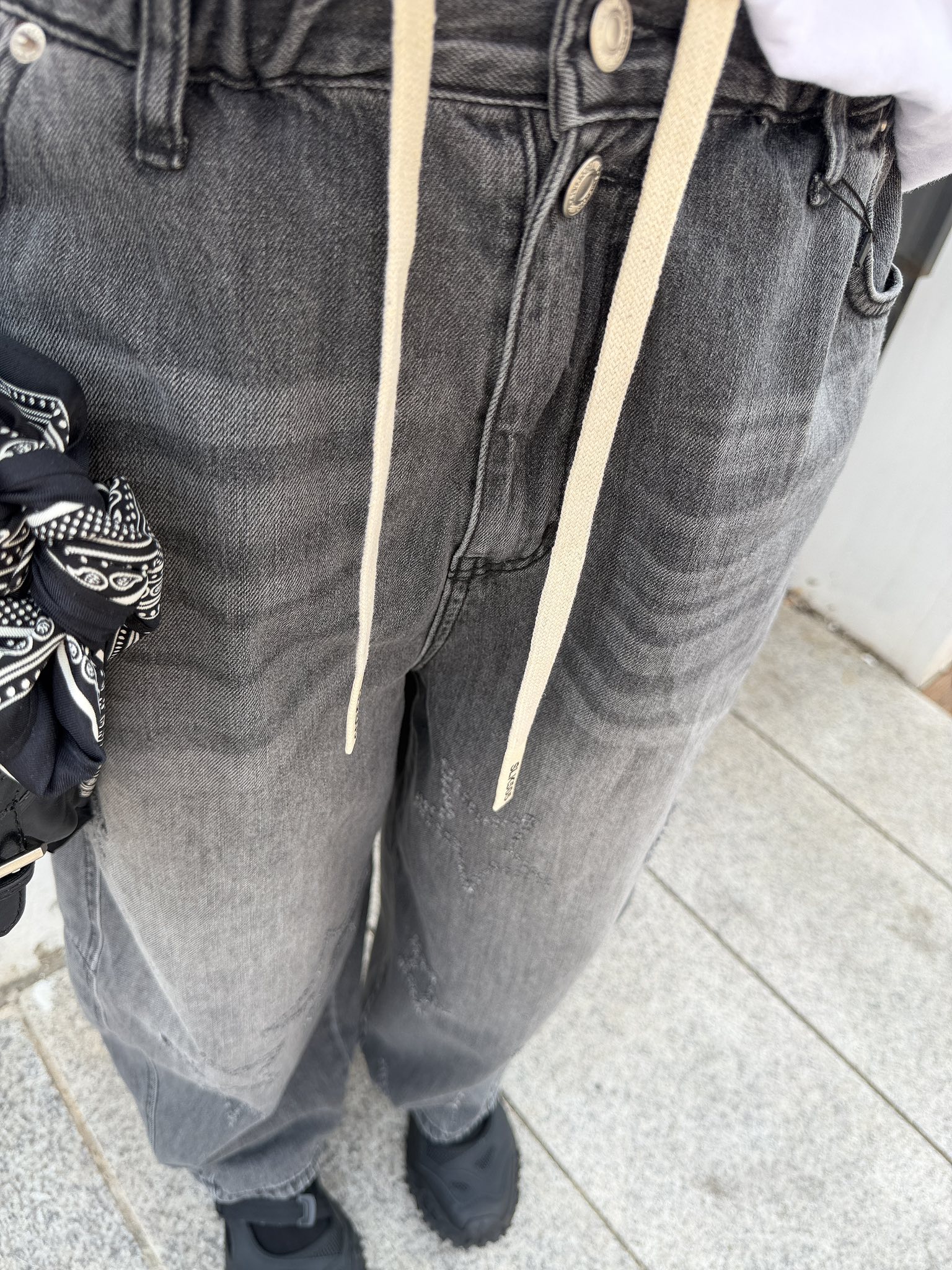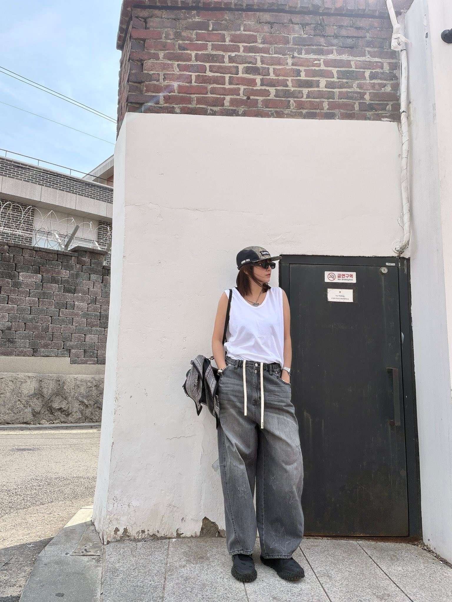 而是帶一點自然刷白層次,立體繭型褲管,從腰臀一路往下都保留了空間感,