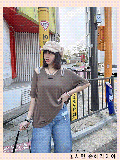 韓國連線 Bi36 雙肩挖洞設計布標上衣 NT.$788 -
